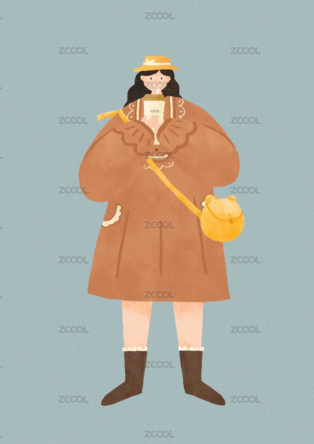 生活日常插画之一个正抱着奶茶喝的都市女孩