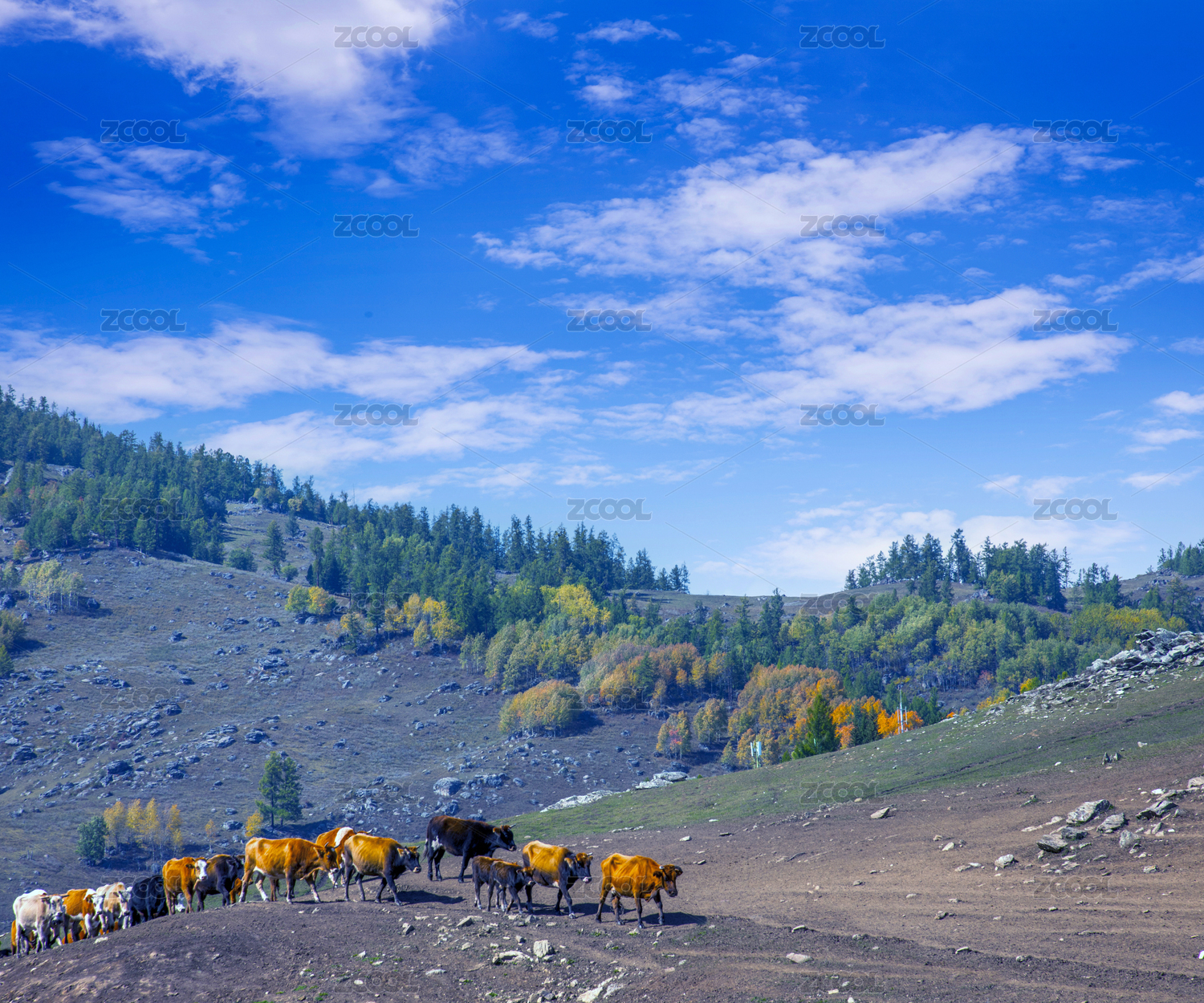中国新疆布尔津县贾登峪镇牧民牛羊大迁徙-