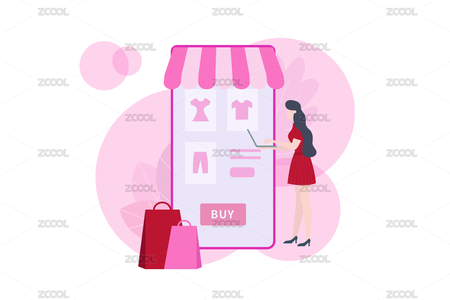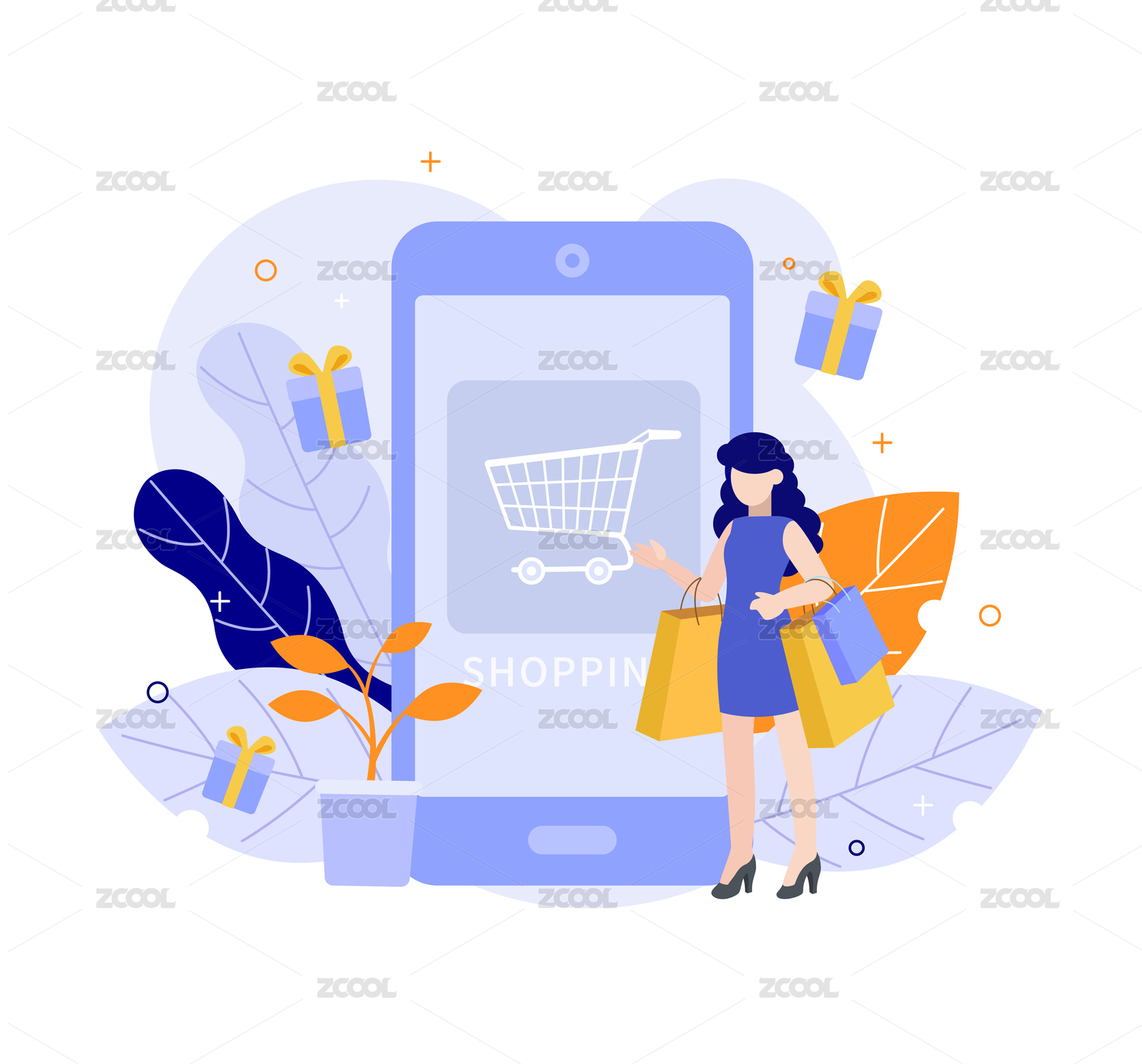 网上购物矢量插画