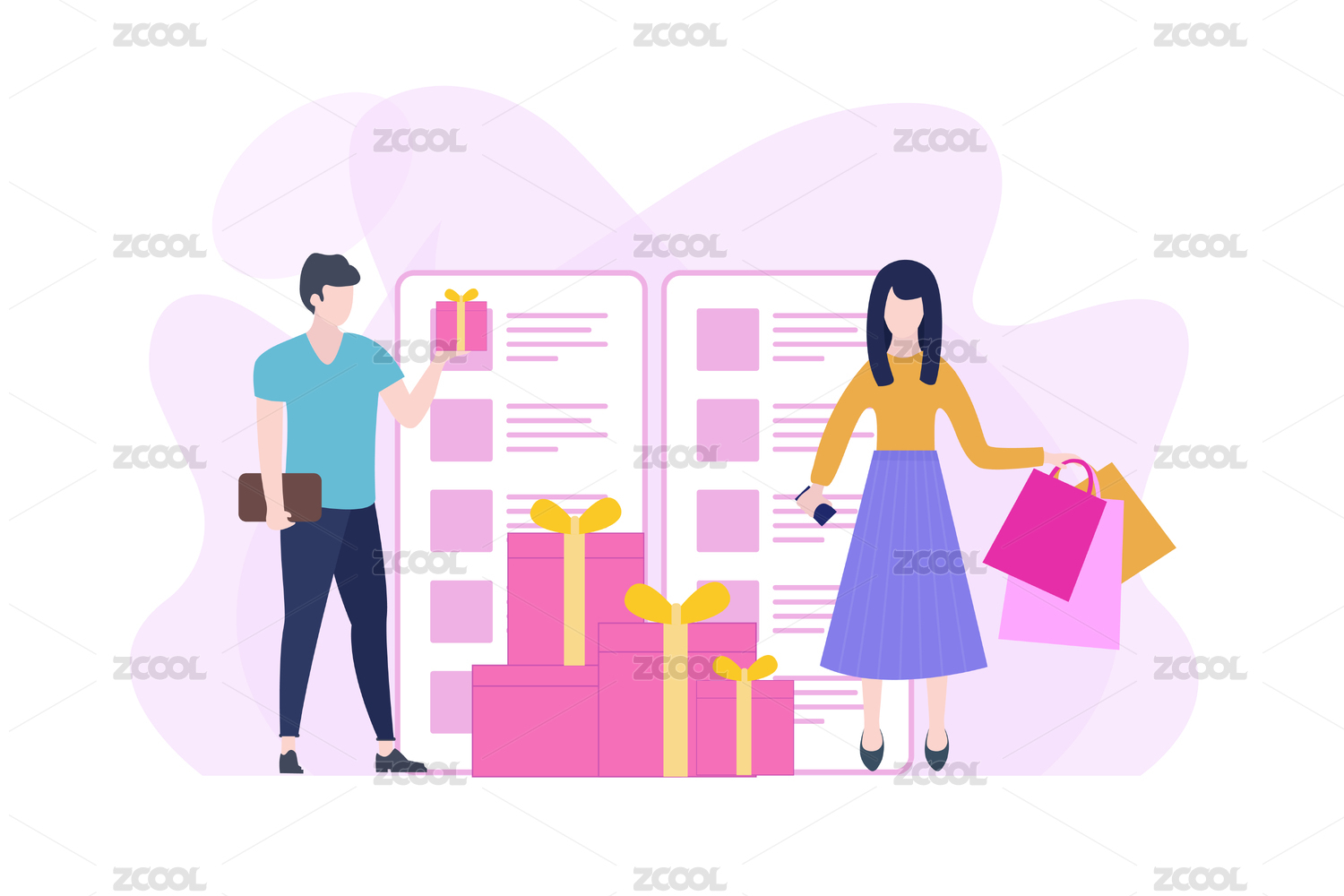 扁平风网上购物礼物人物矢量插画