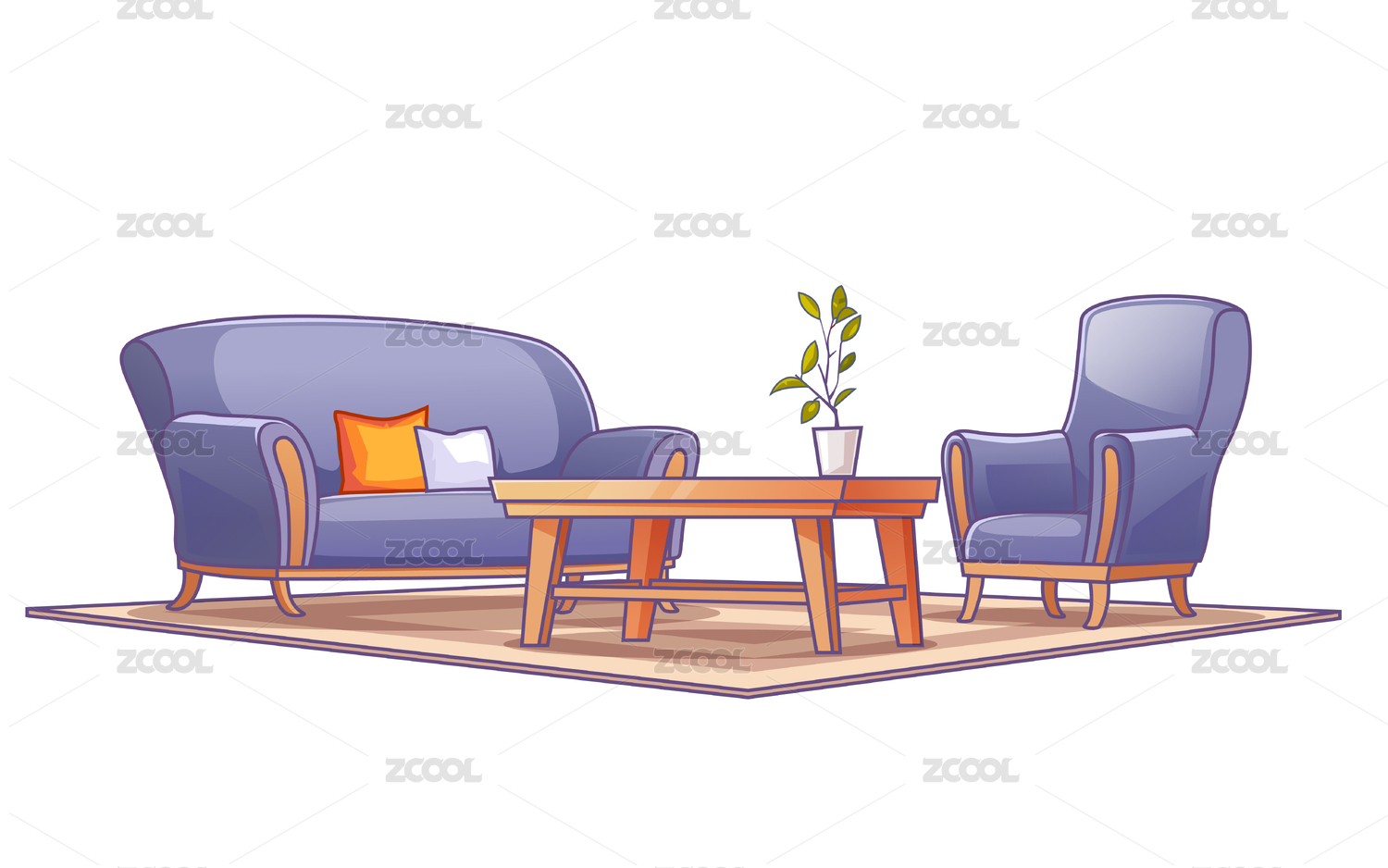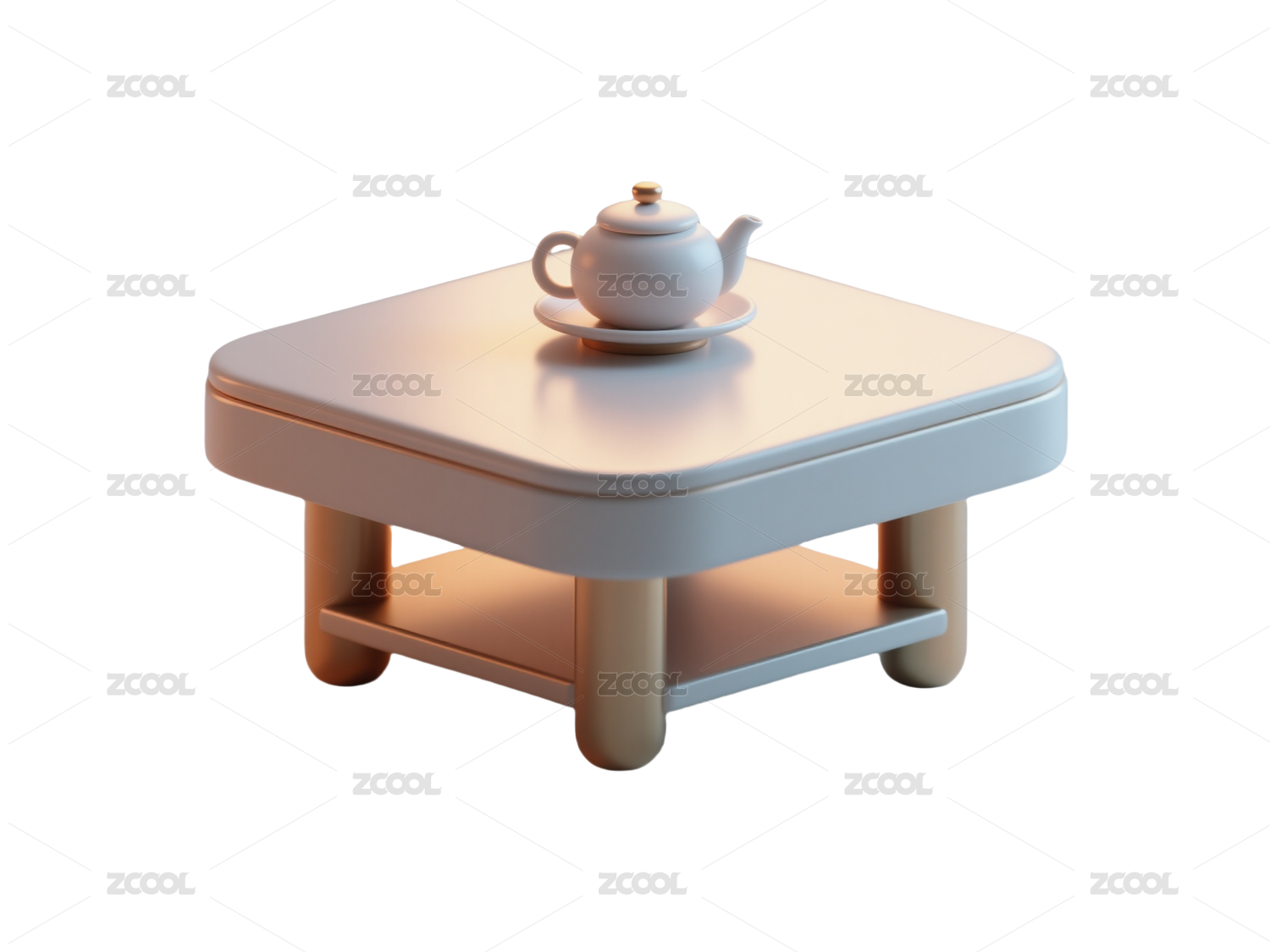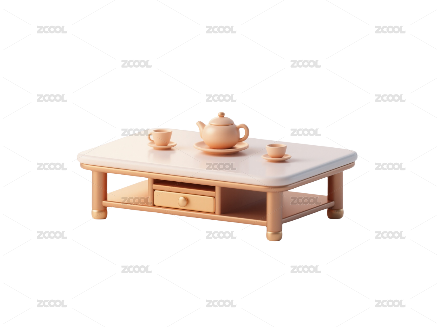 家居题材的客厅墙面、皮沙发和茶几以及咖啡杯和勺子,3d渲染