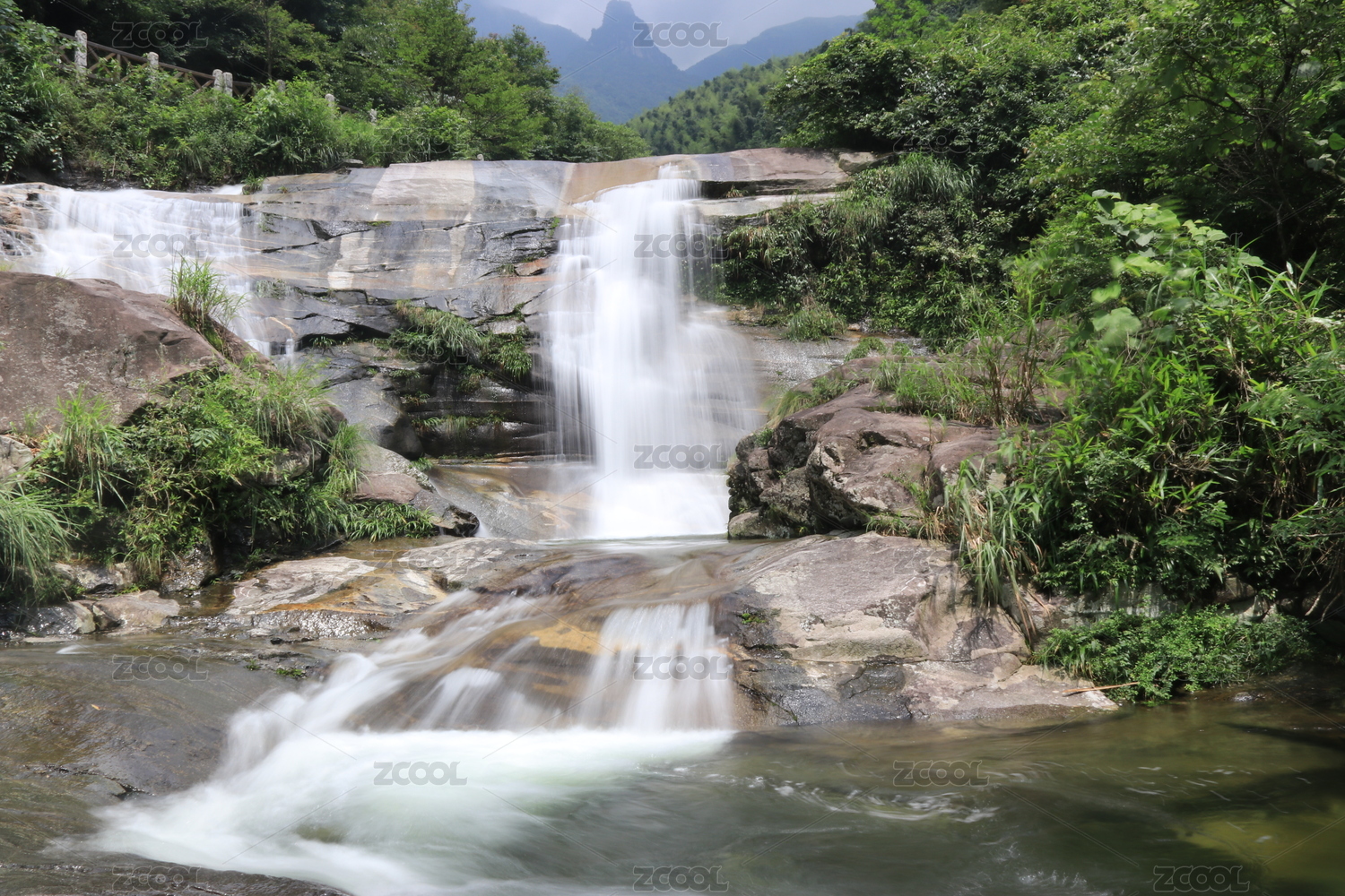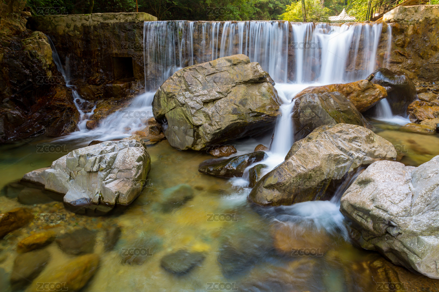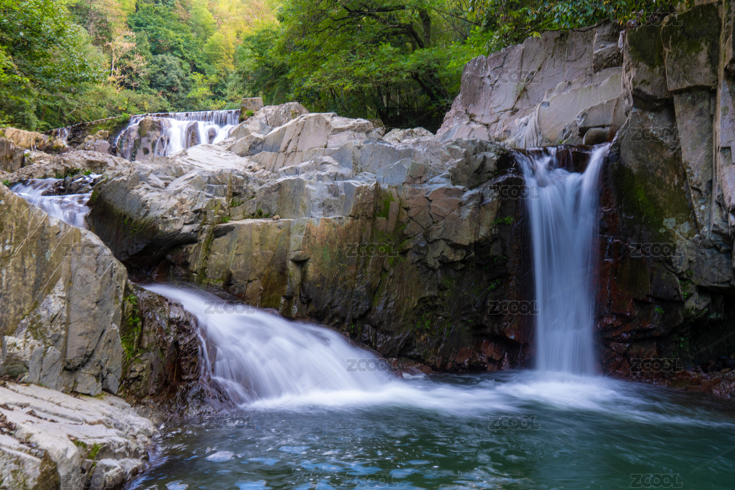 浙东小九寨景区内山间峡谷间流水瀑布水潭