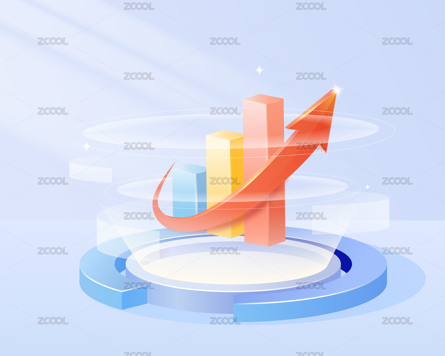 金融理财数据图表柱状图和上涨箭头矢量插画
