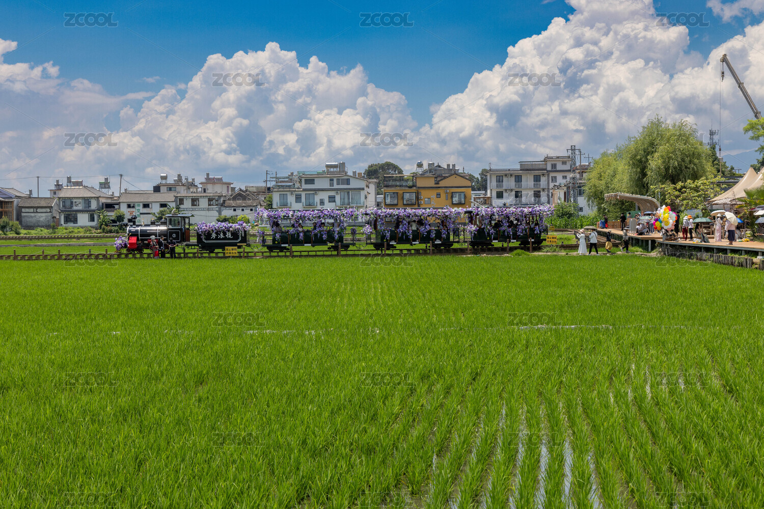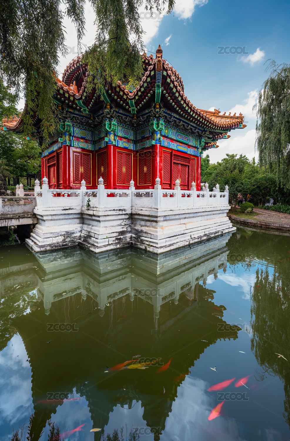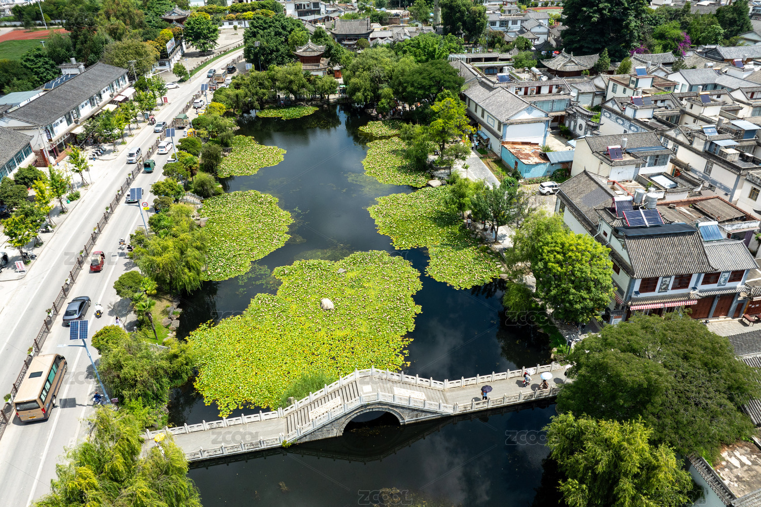 中国云南大理喜洲古镇传统建筑荷塘湖泊风光