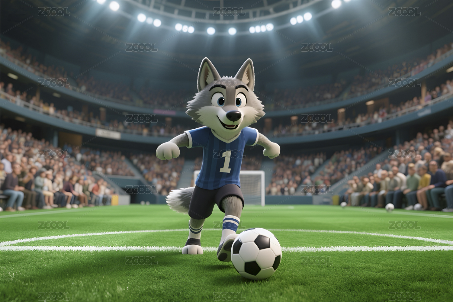 穿蓝色运动服的男孩在踢足球3D插画素材
