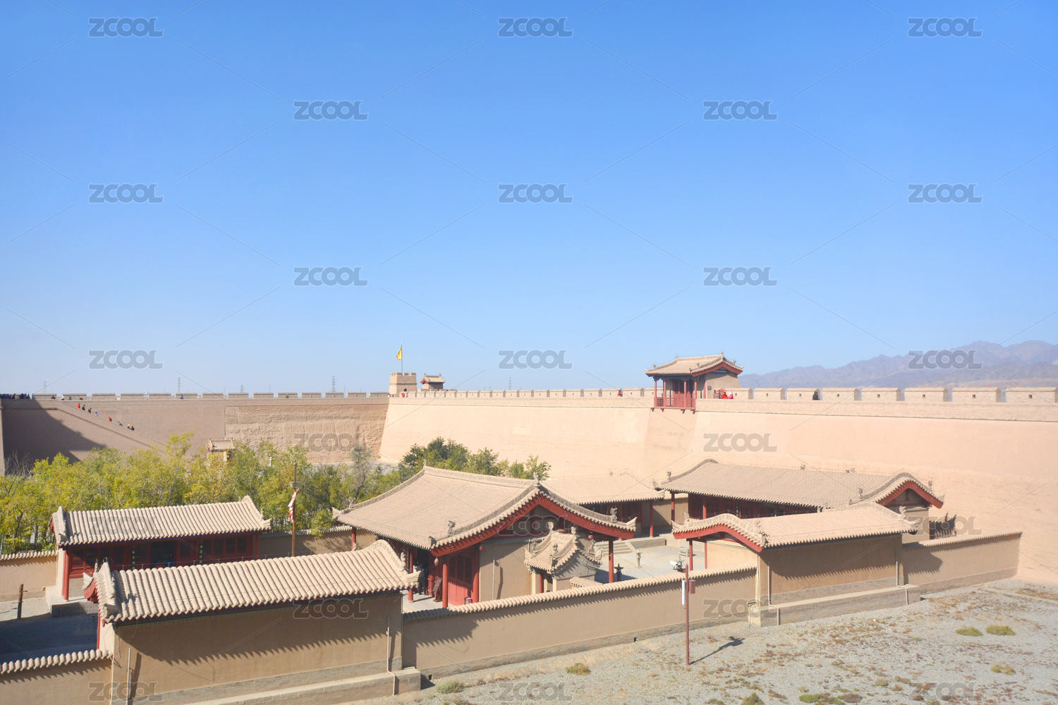 中国甘肃嘉峪关长城将军府邸游击衙门俯拍