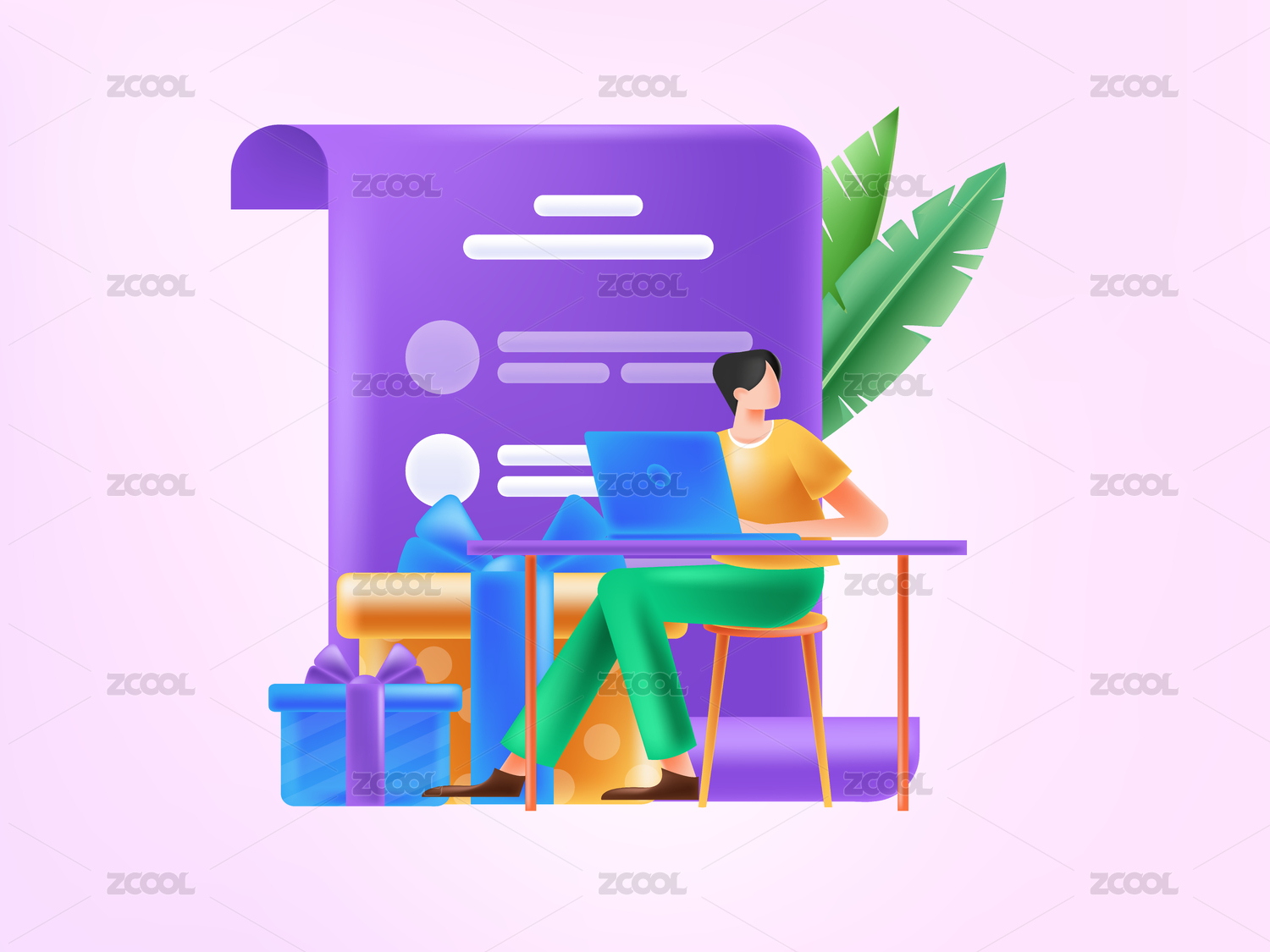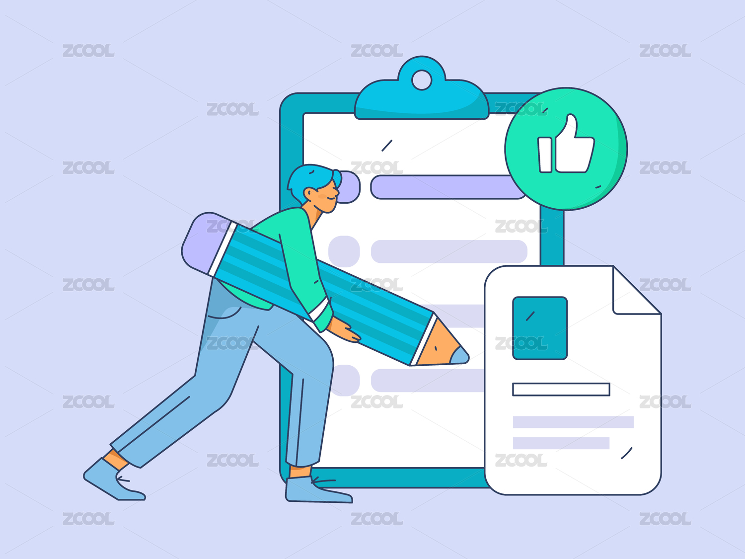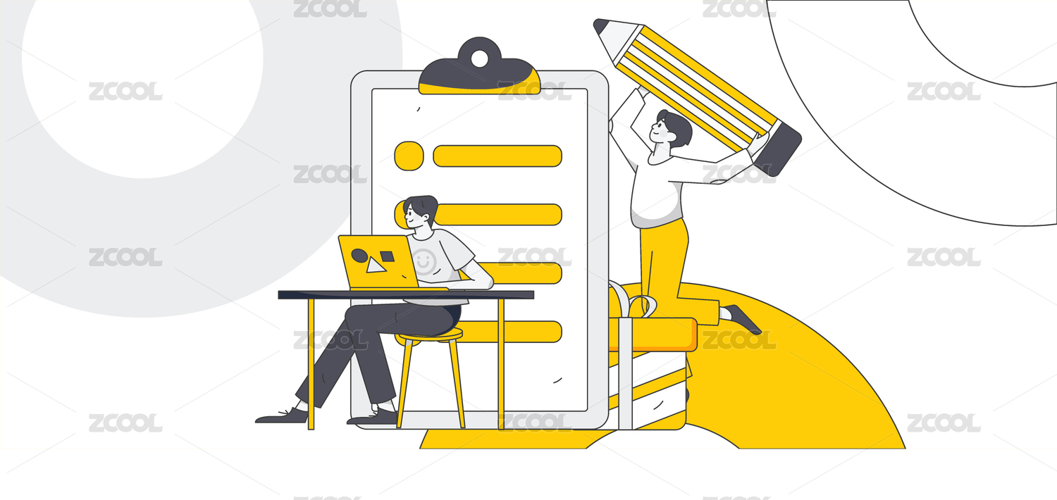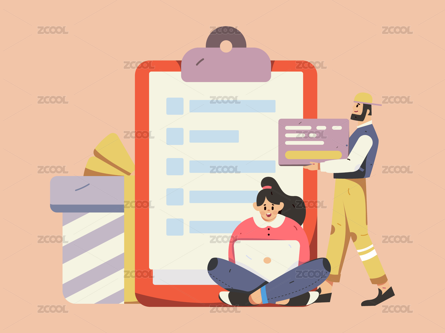 填写问卷调查查看分析数据的工作人员,矢量扁平概念插画.eps