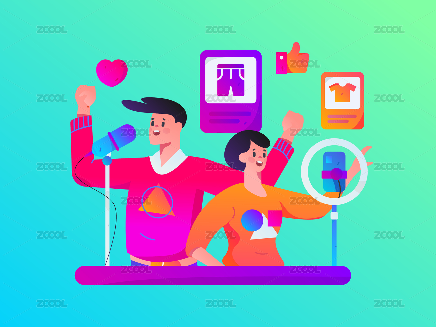 网红直播带货矢量互联网手绘插画
