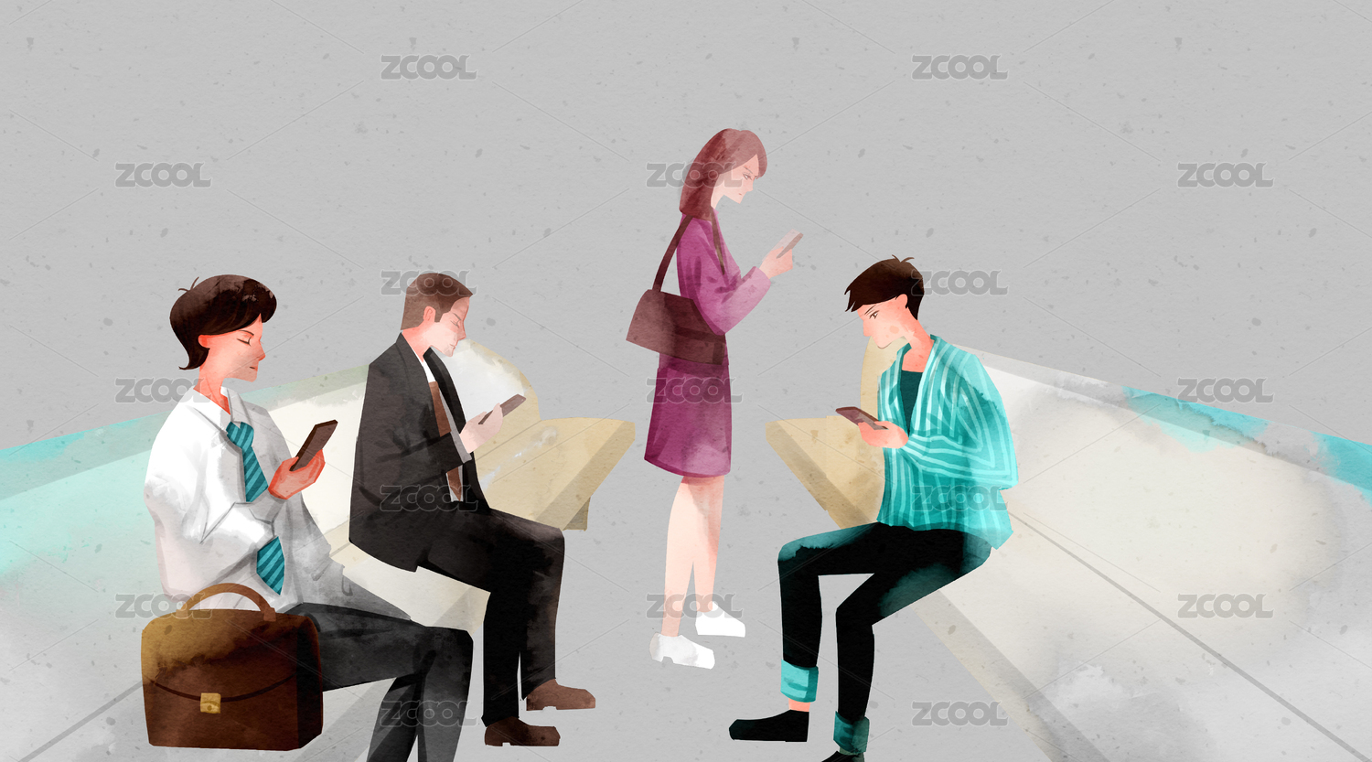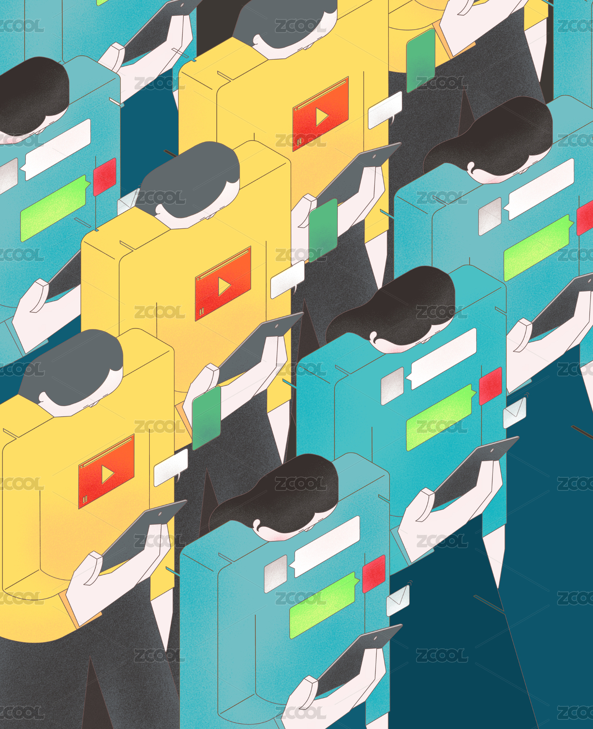 小清新风格低头族手机族社会现象插画