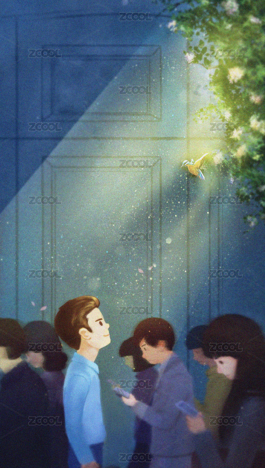 水彩风格上班族插画