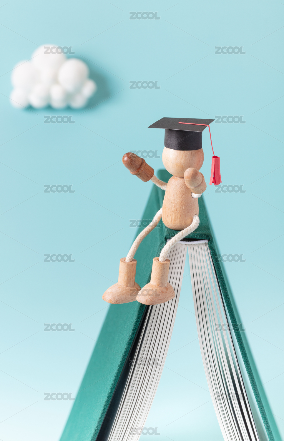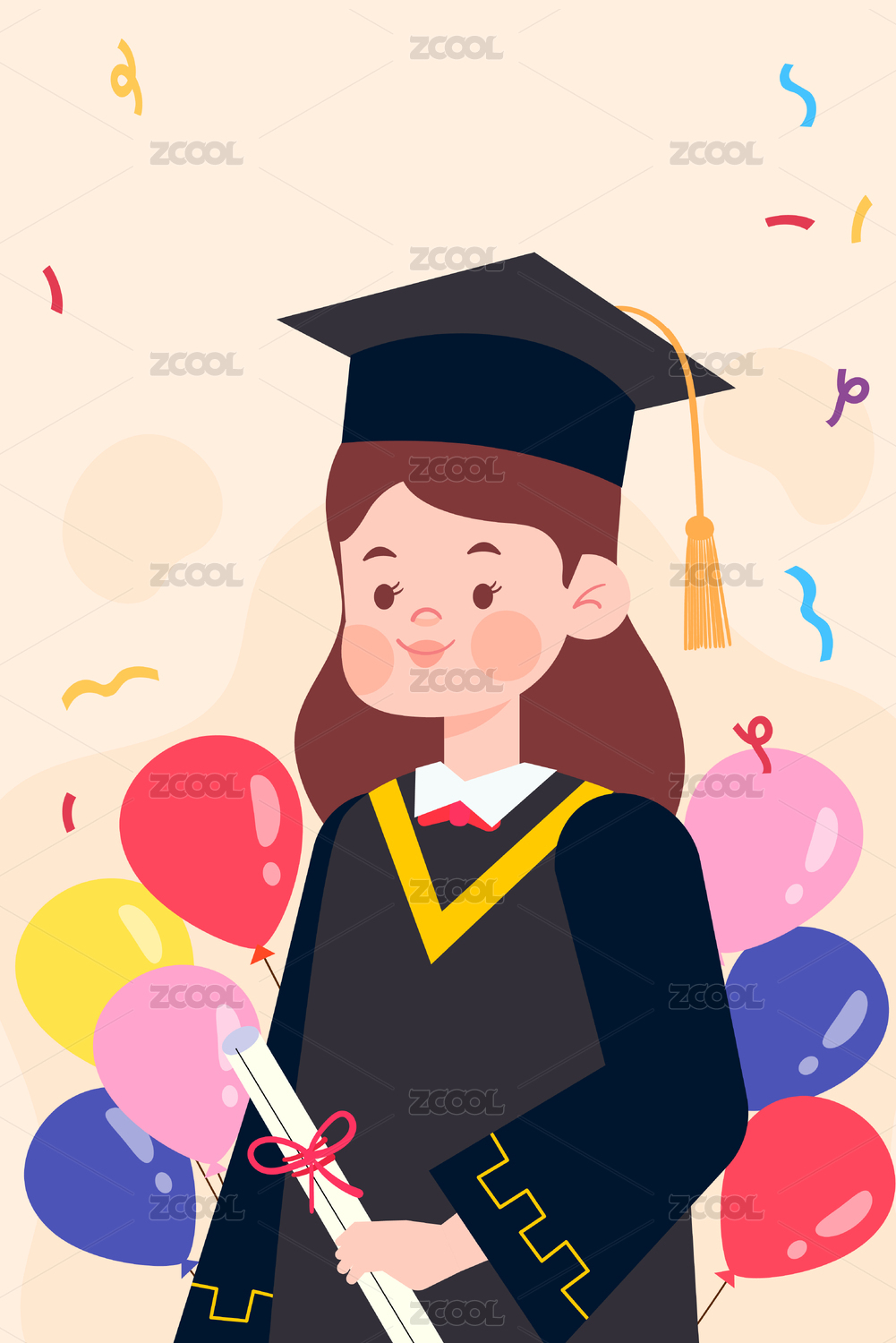 草坪上有学士帽和卷着学位证书,毕业季插画