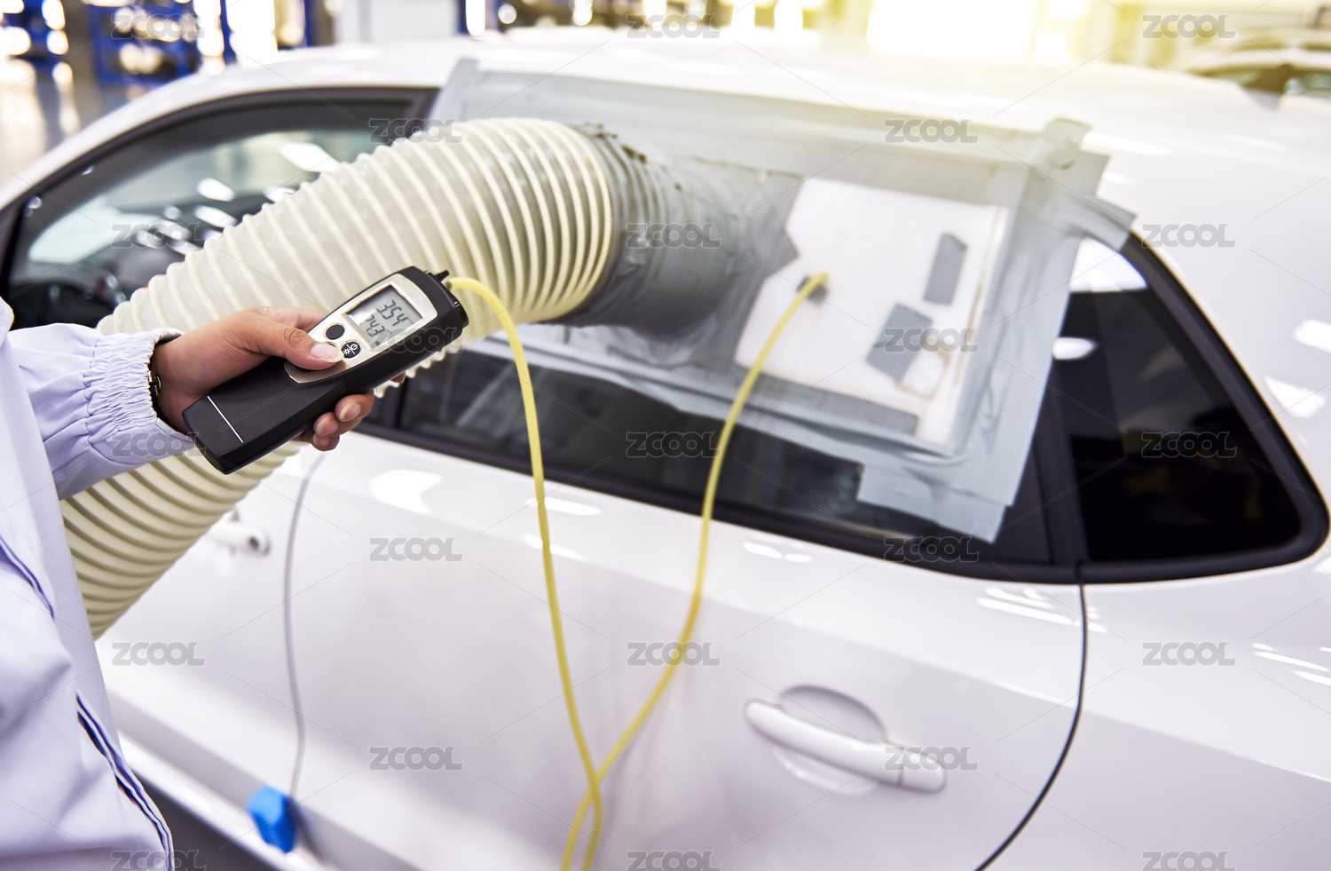 工人正在使用专业仪器检测汽车隔音