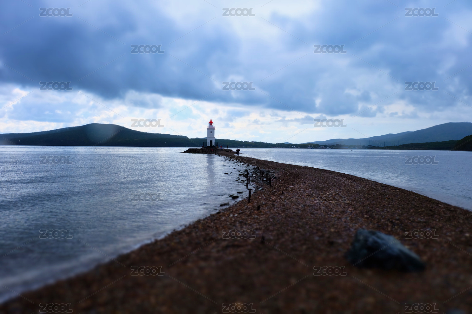 俄罗斯海参崴海上日出孤独的灯塔