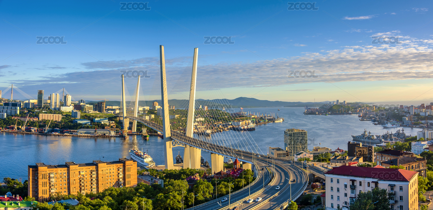 俄罗斯海参崴金角湾大桥全景风光