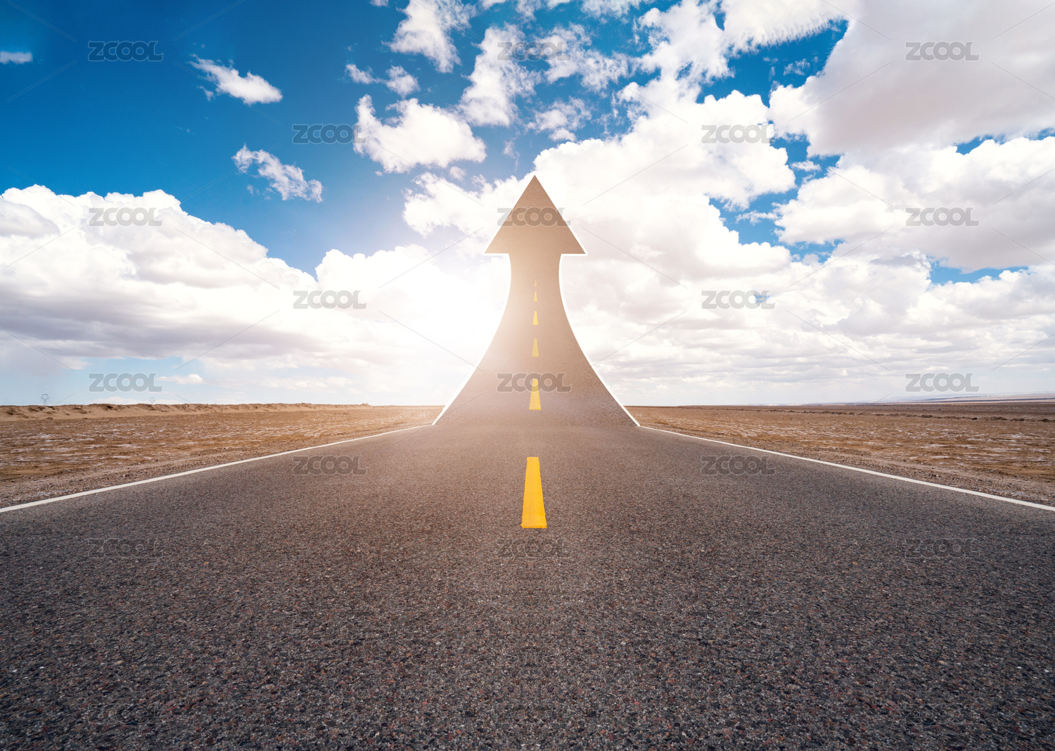 中国青海公路向上的箭头增长趋势高速发展概念成功的开始起航开启道路马路公路发展建设