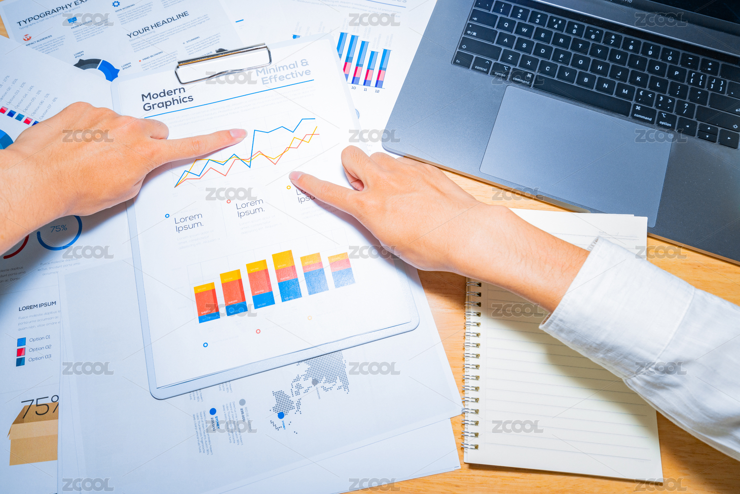 正在办公开会的会计师们商量讨论管理计算预测分析年终报表的走势趋势