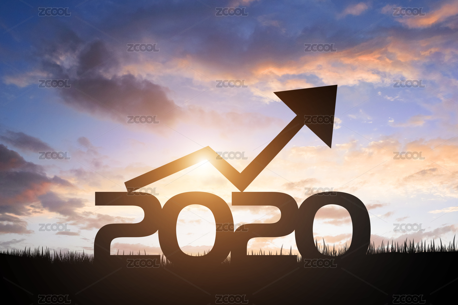 2020年新的开始新的希望皇冠向上的箭头走势趋势胜利成功剪影概念