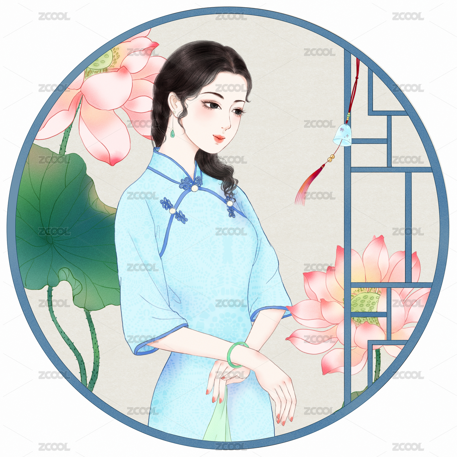 手绘插画古装美人女孩立绘