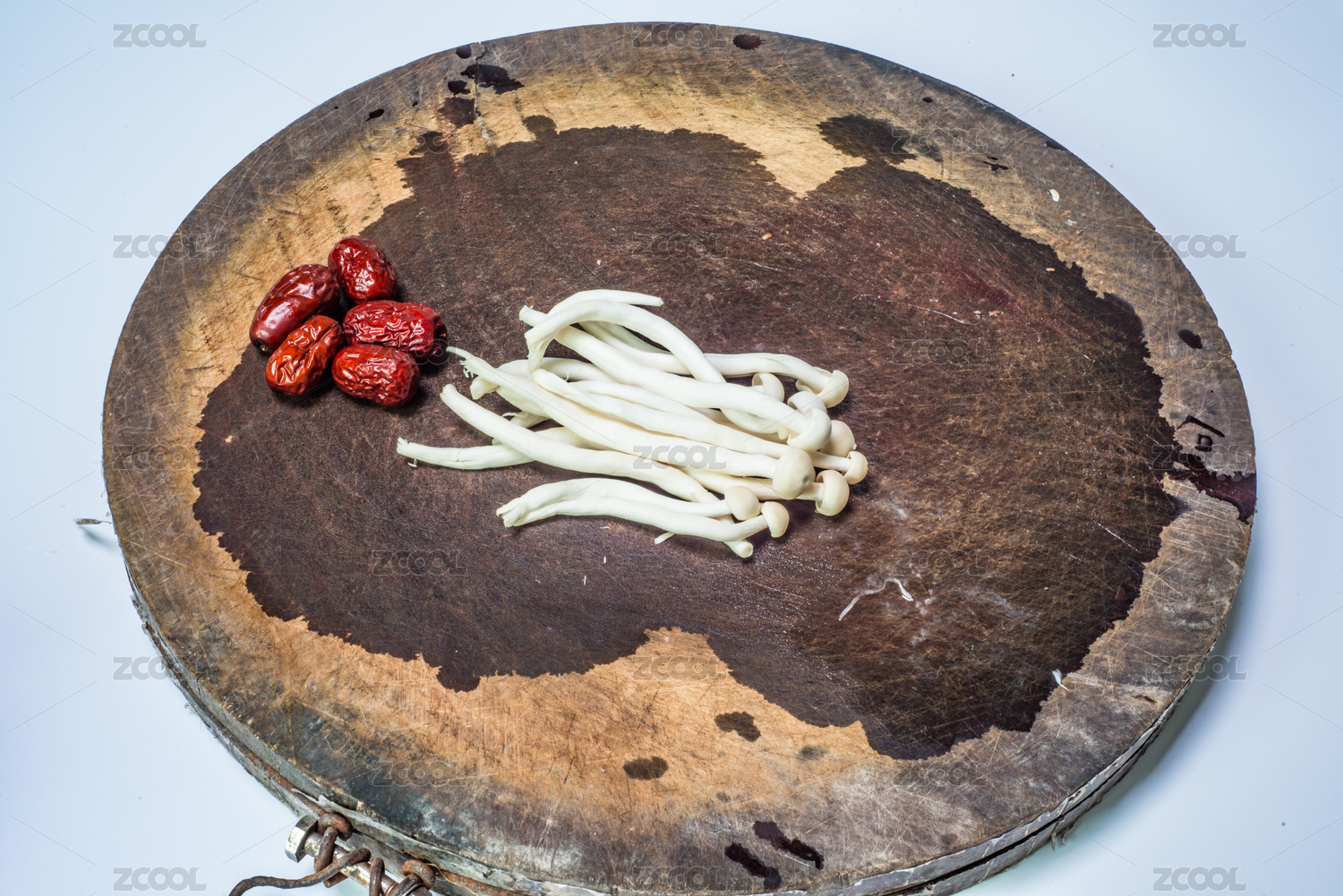 清洗干净放在粘板上的几颗红枣和草菇