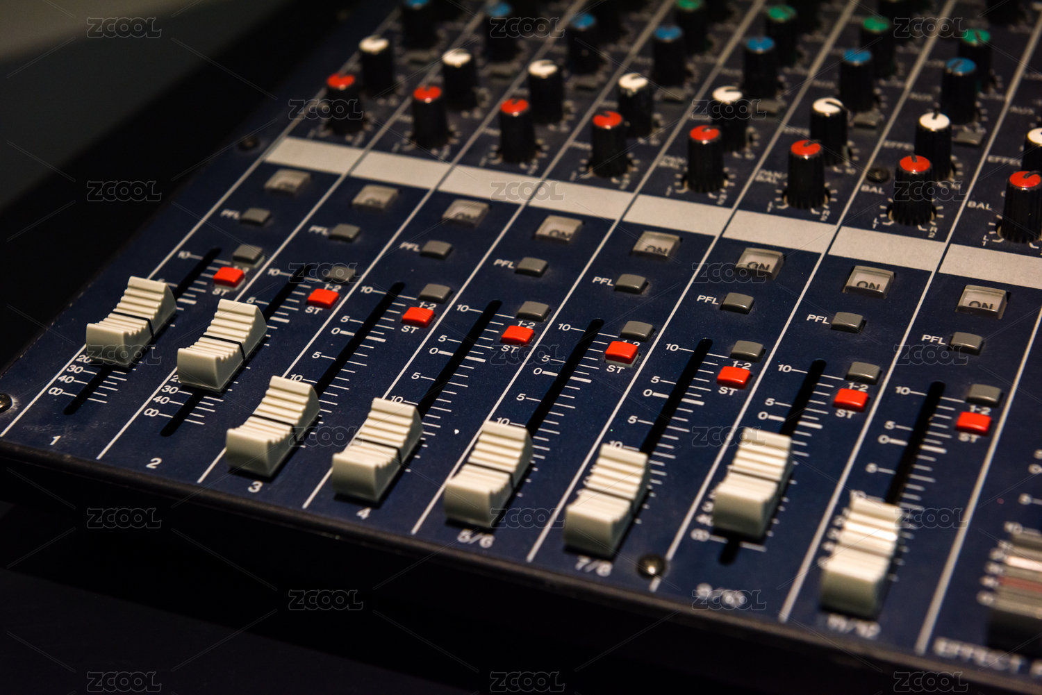 音响控制台上的红色音量控制器