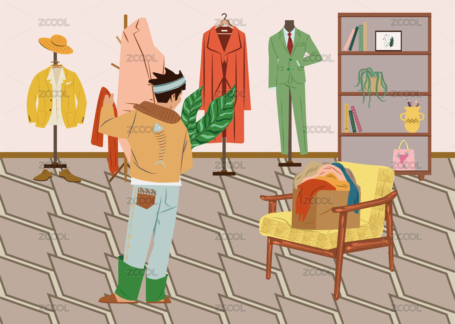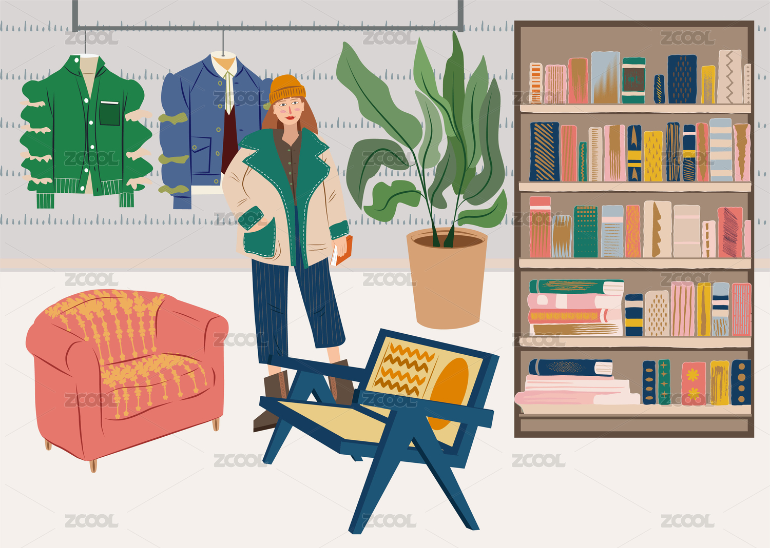 服装店室内家居服装穿搭沙发桌椅一景