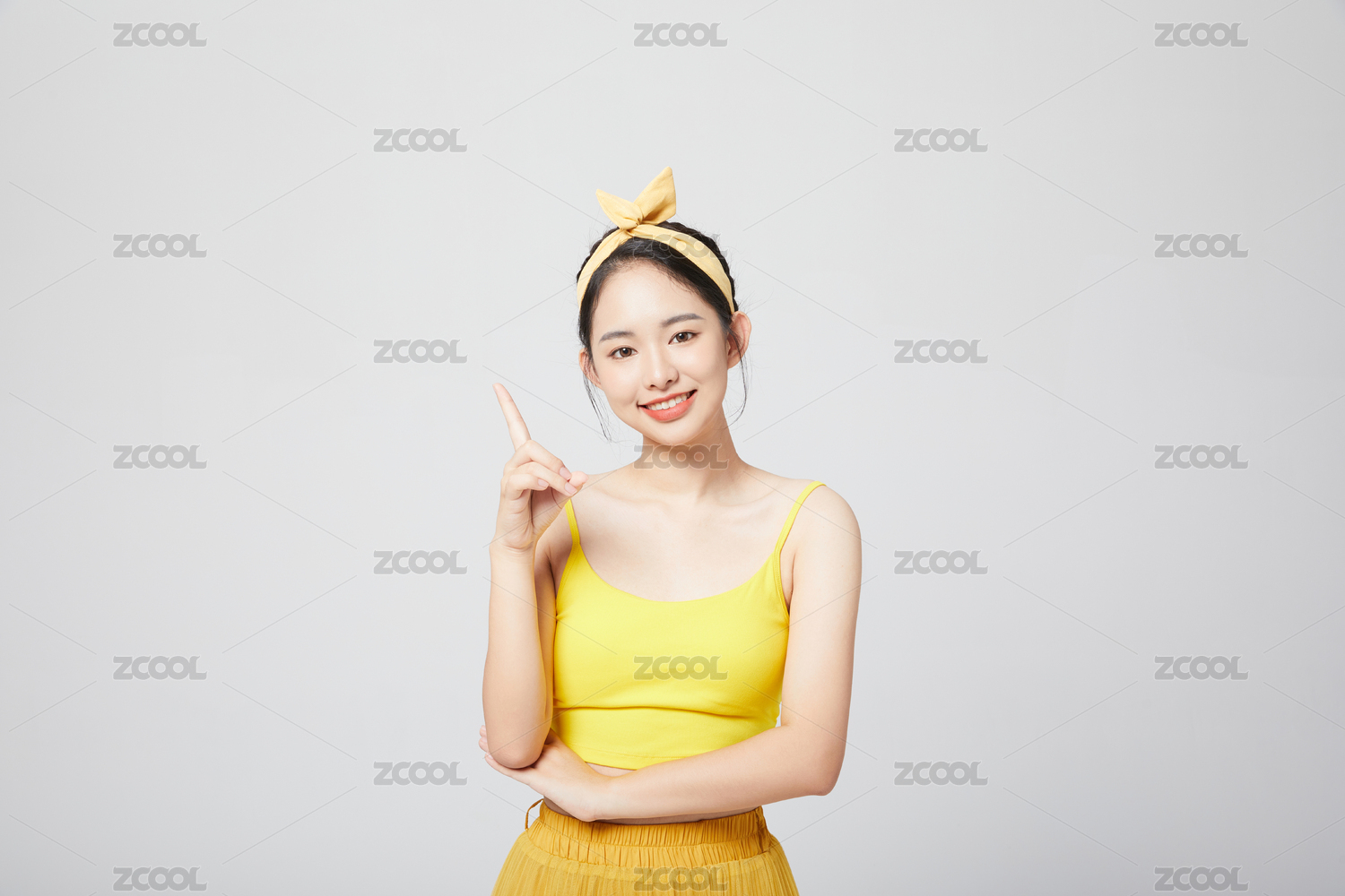 活力少女单手指向旁边