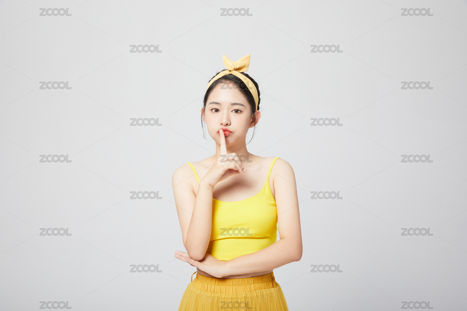 手指放在嘴唇上的搞怪少女
