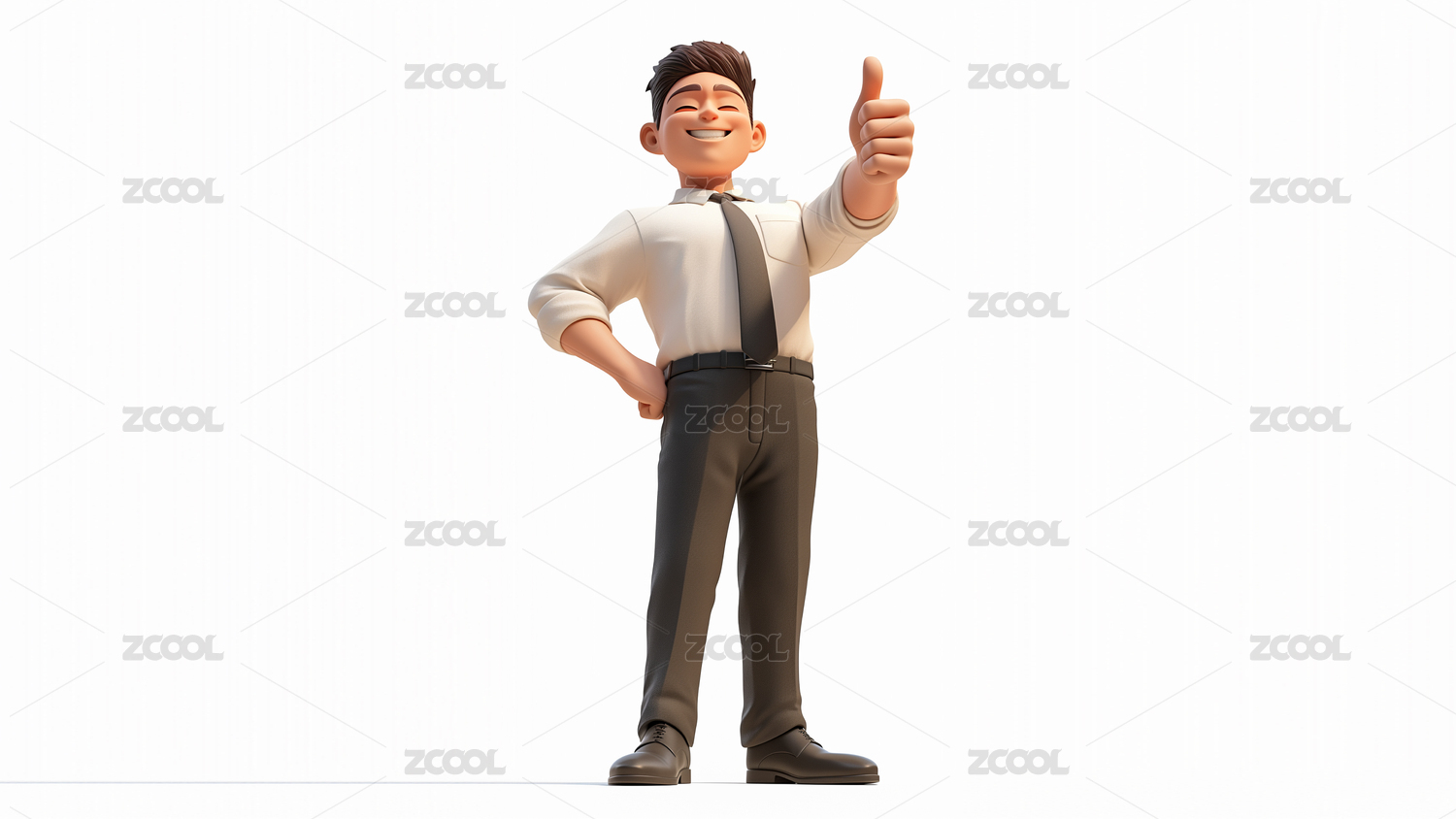 3D卡通商务男士大拇指点赞