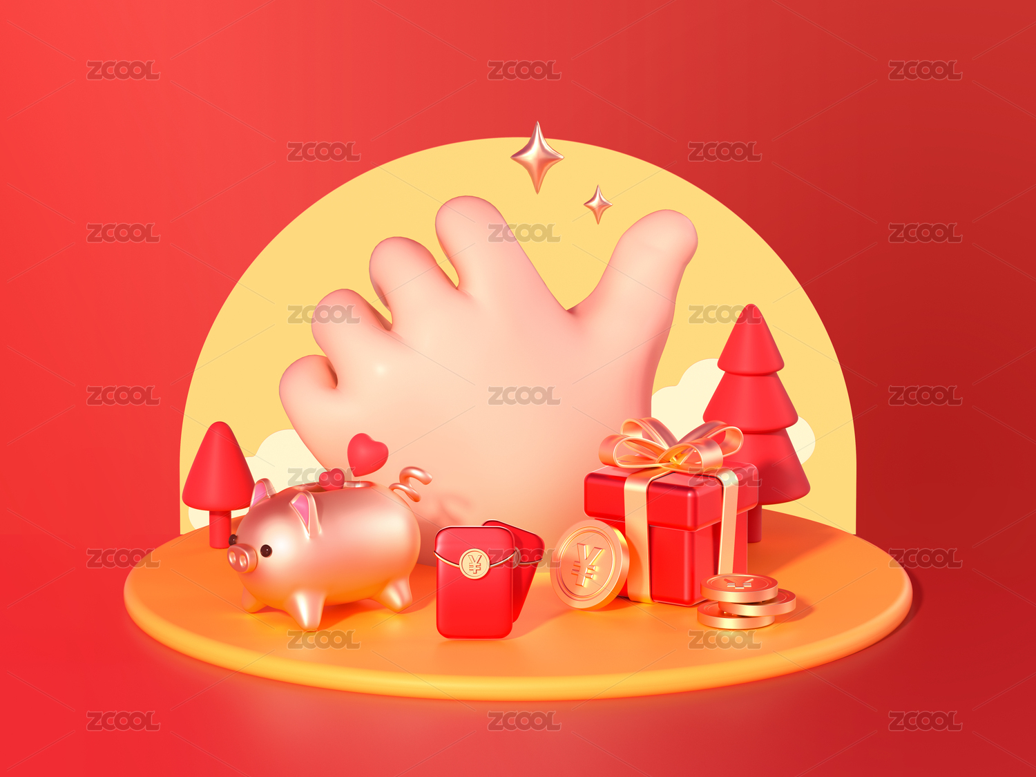 电商活动促销点赞大拇指大手礼盒红包元素堆