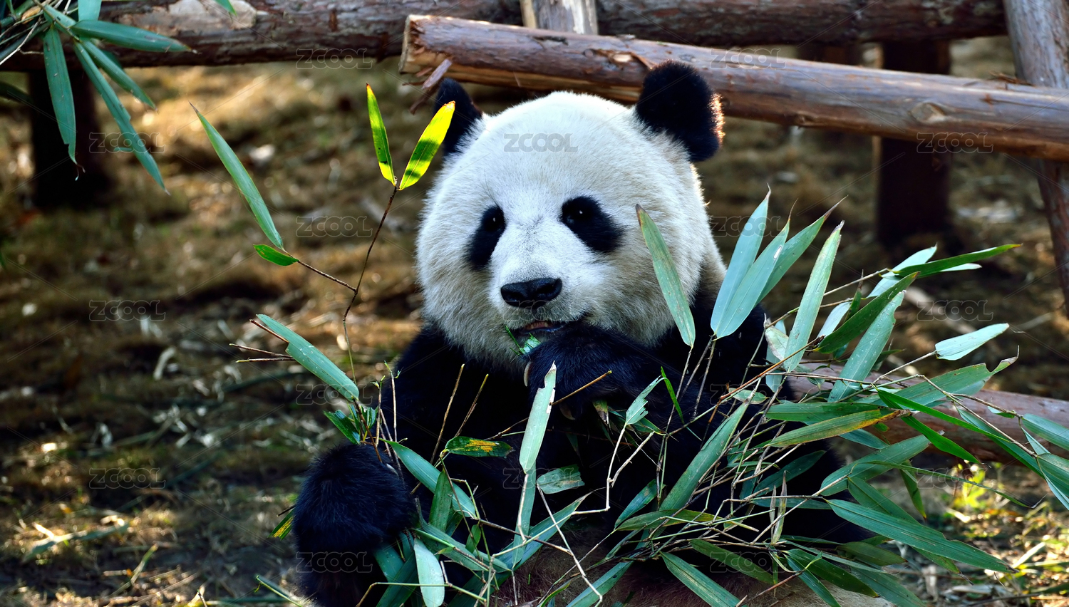 中国国宝大熊猫手拿竹子动物扁平矢量插画