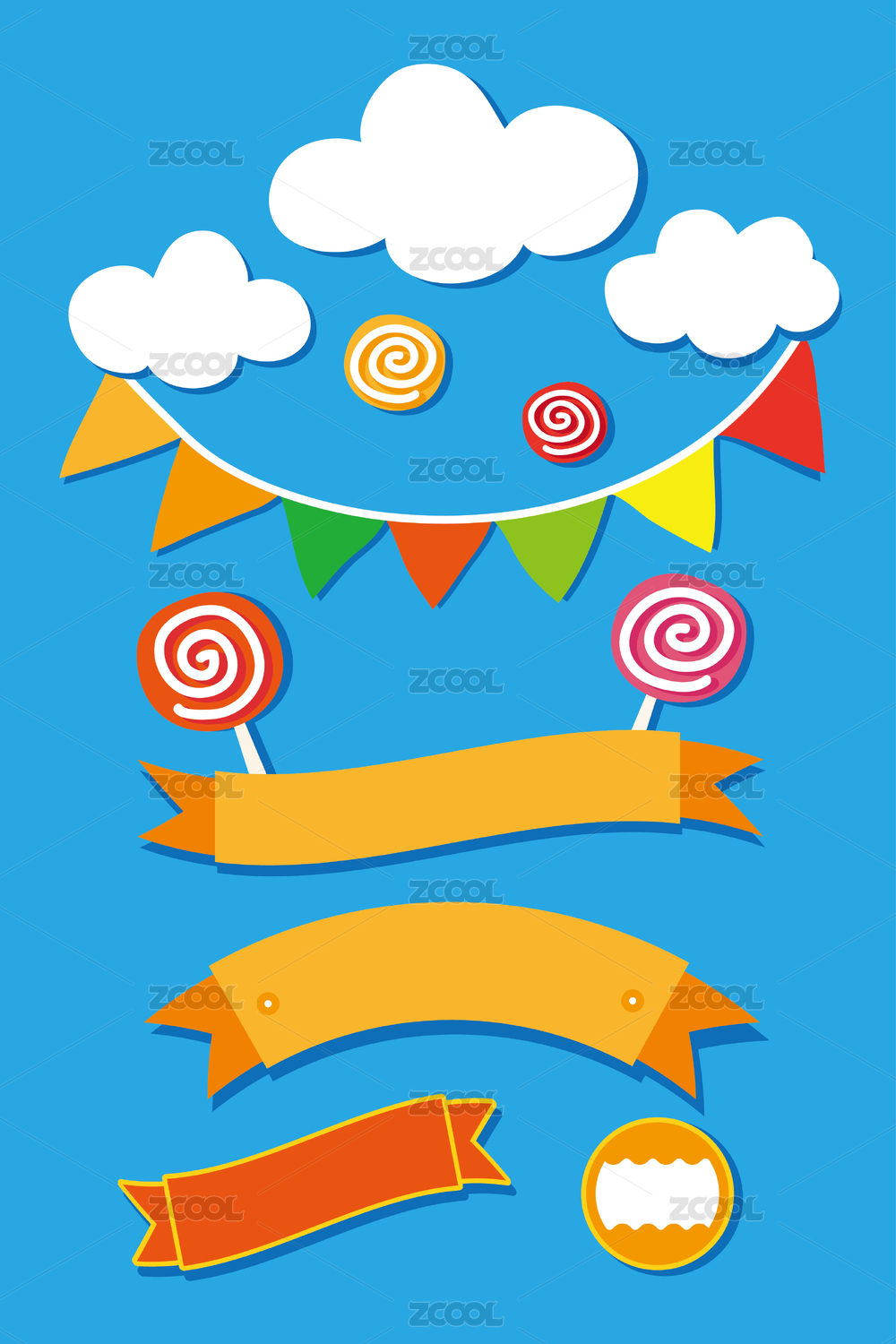 庆祝条幅彩带三角旗标签糖果矢量插图素材