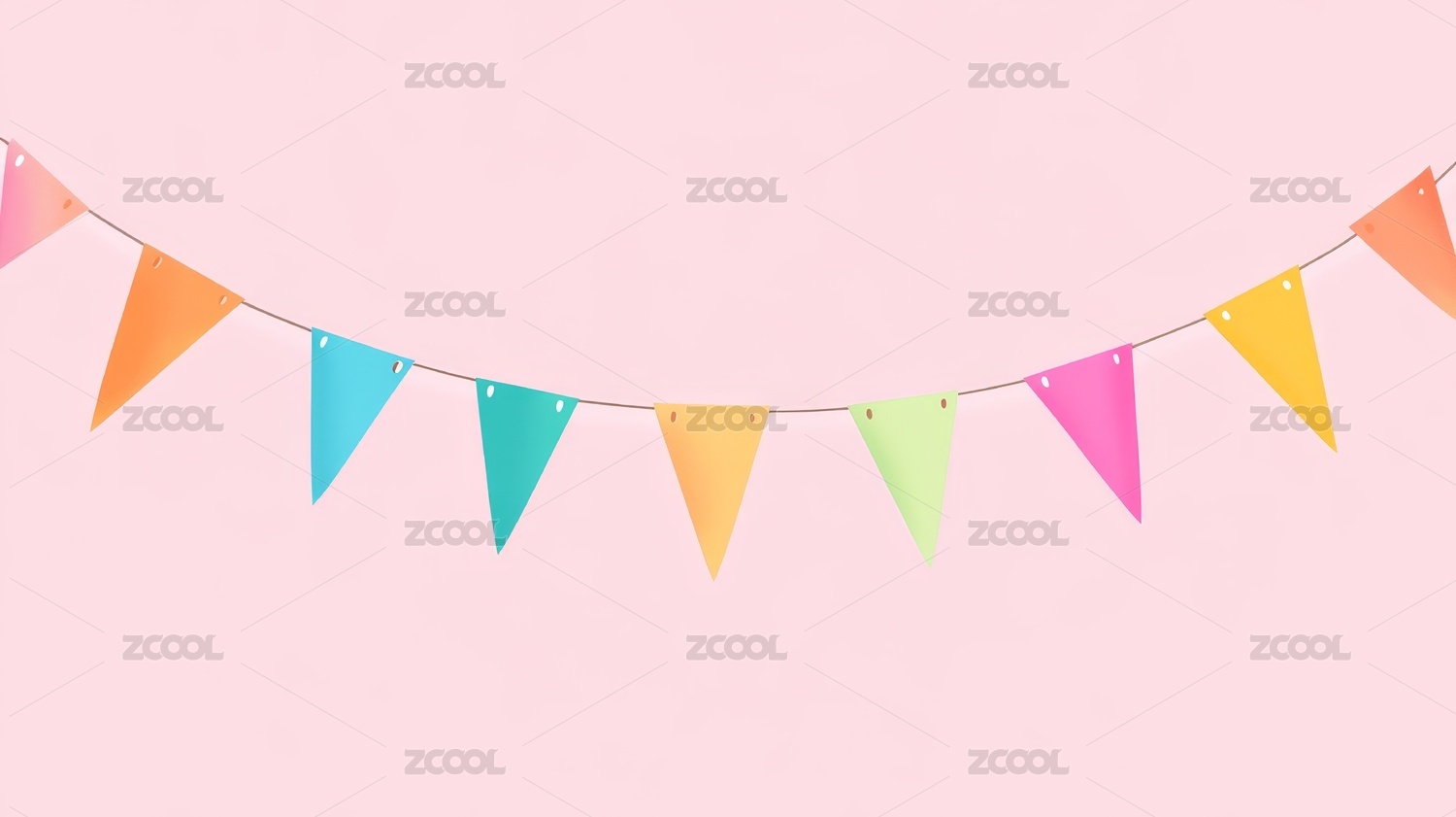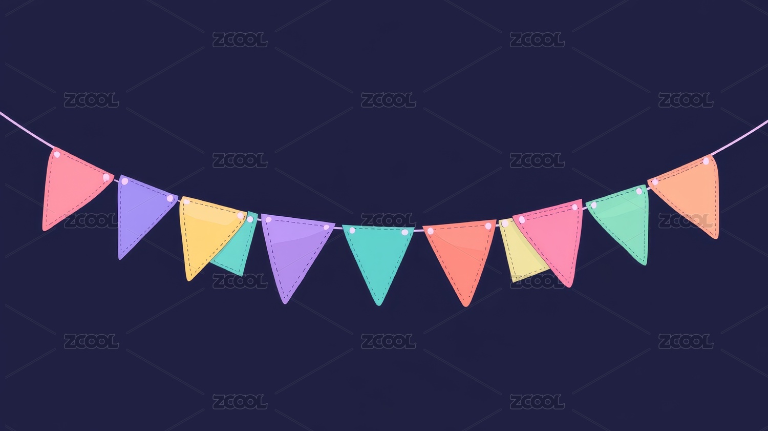 节日派对彩色三角旗卡通插画