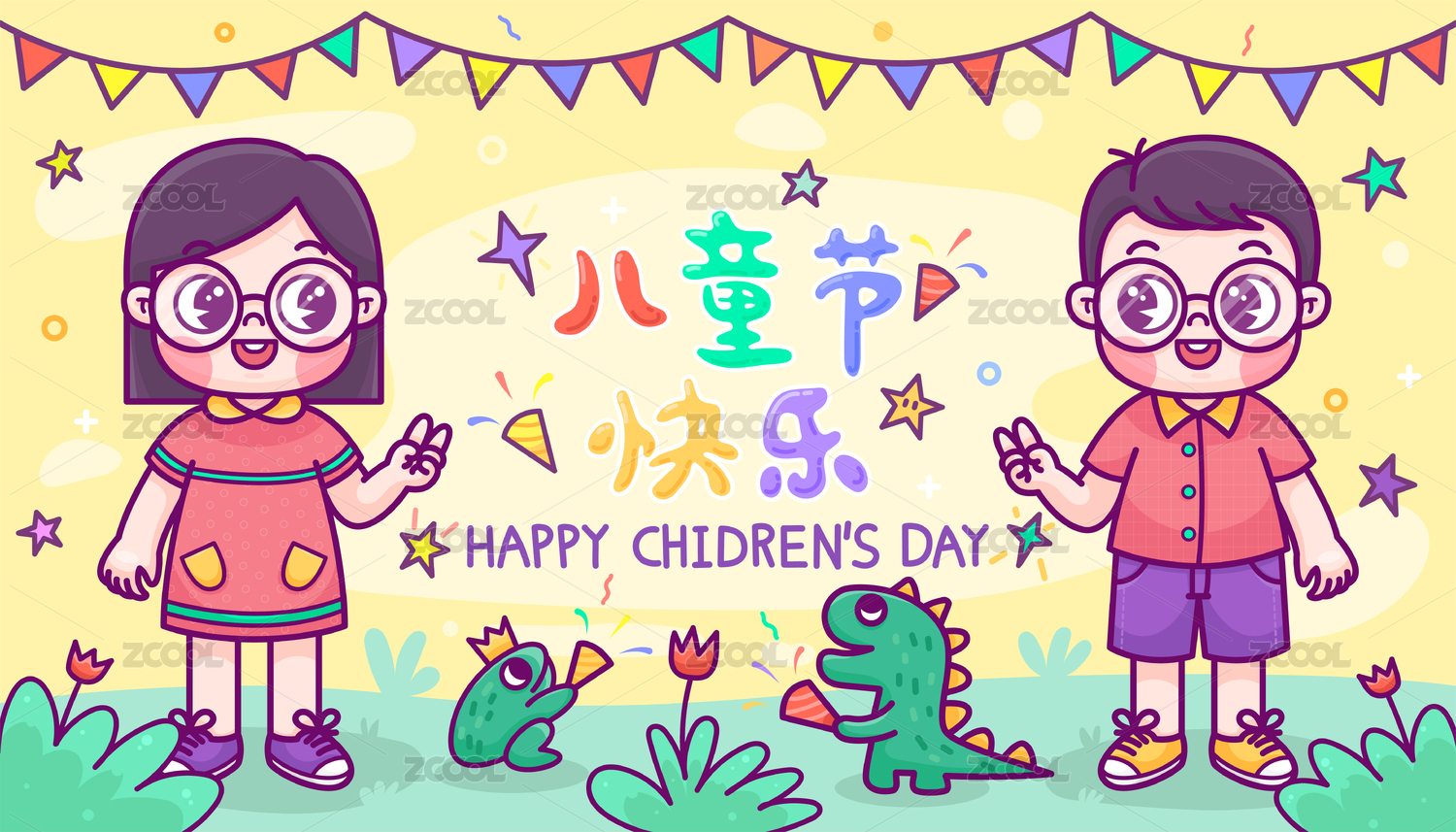 六一儿童节快乐主题插画 快乐儿童