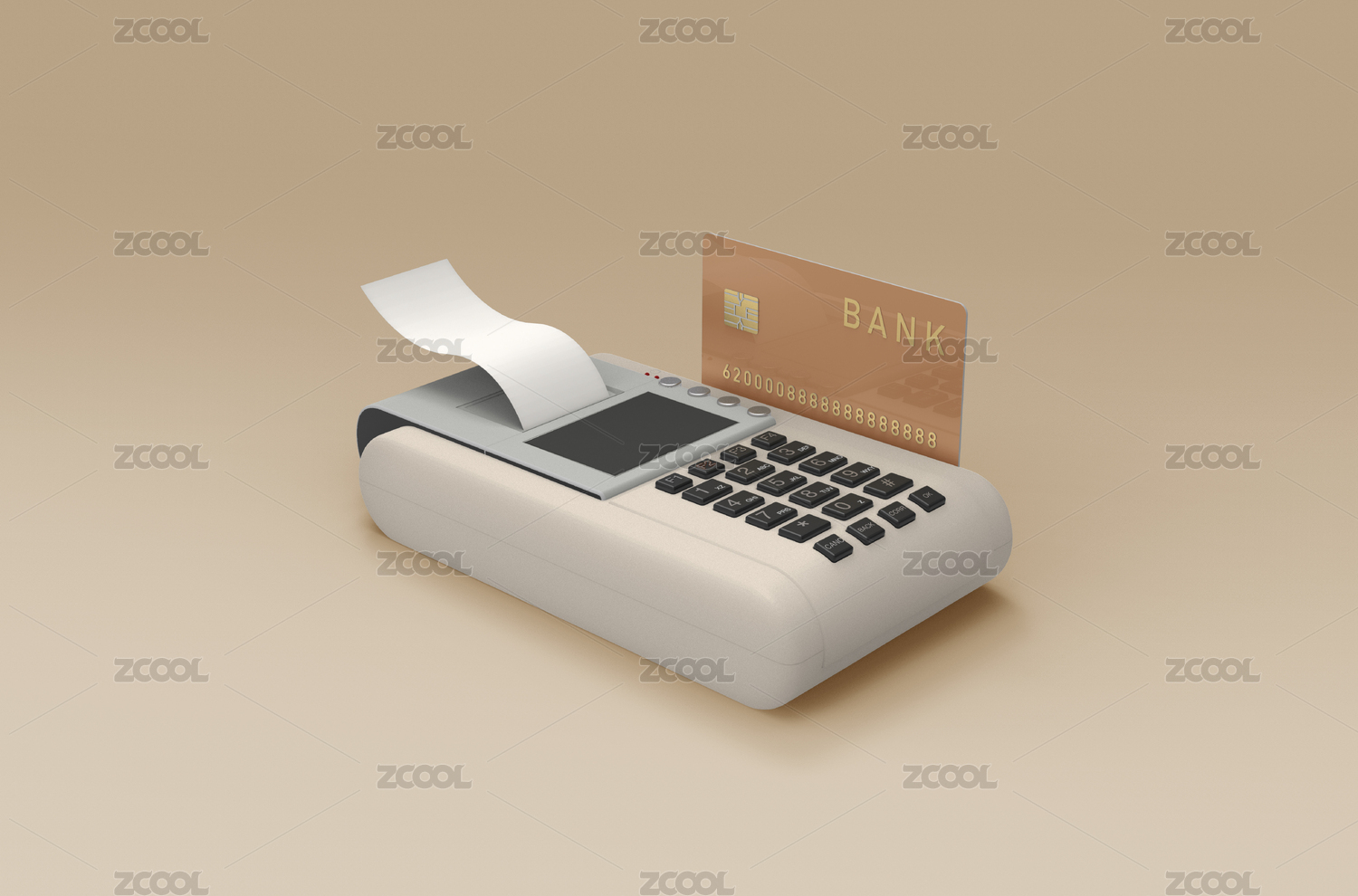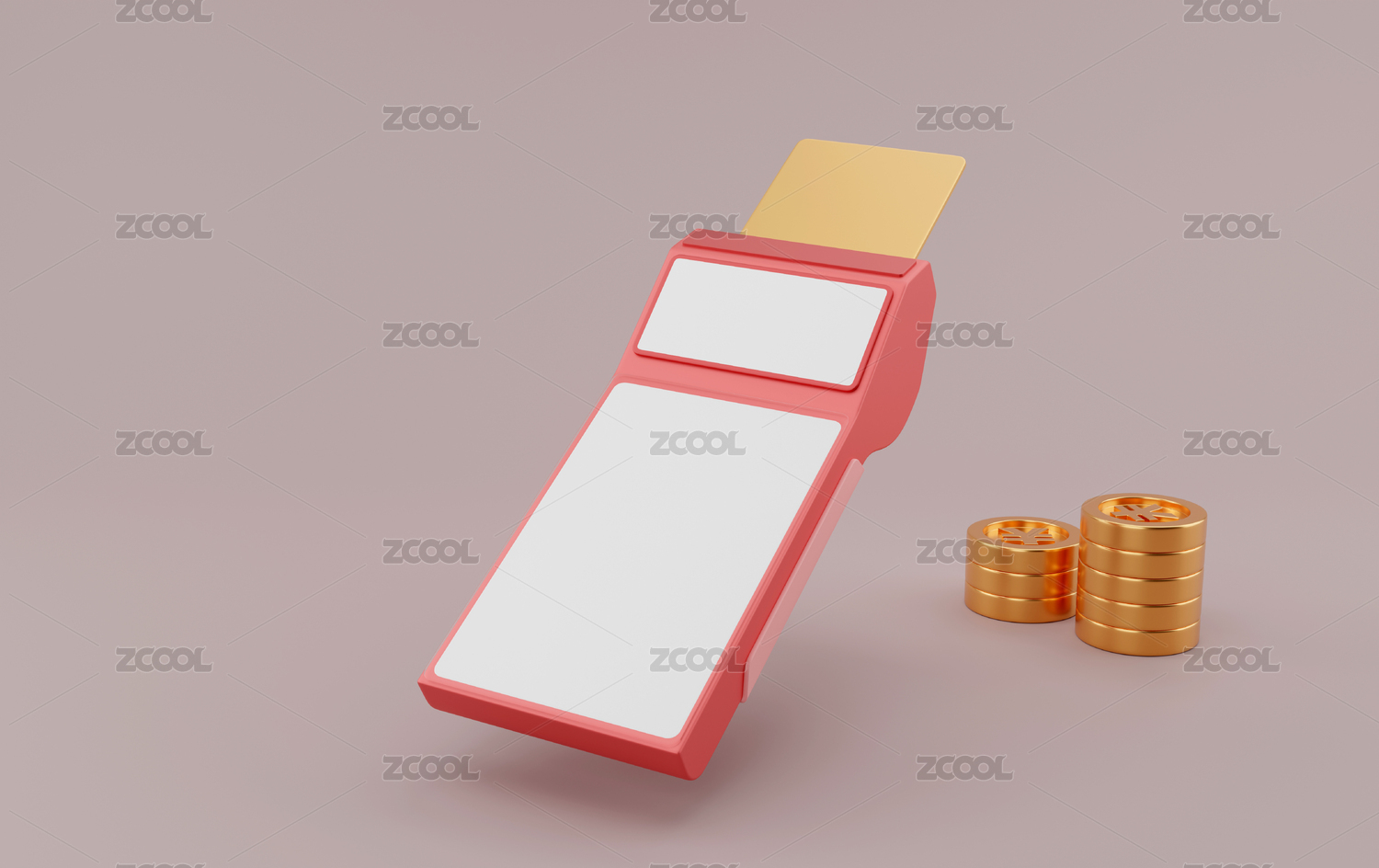 插入金色卡片的金融交易付款设备创意素材