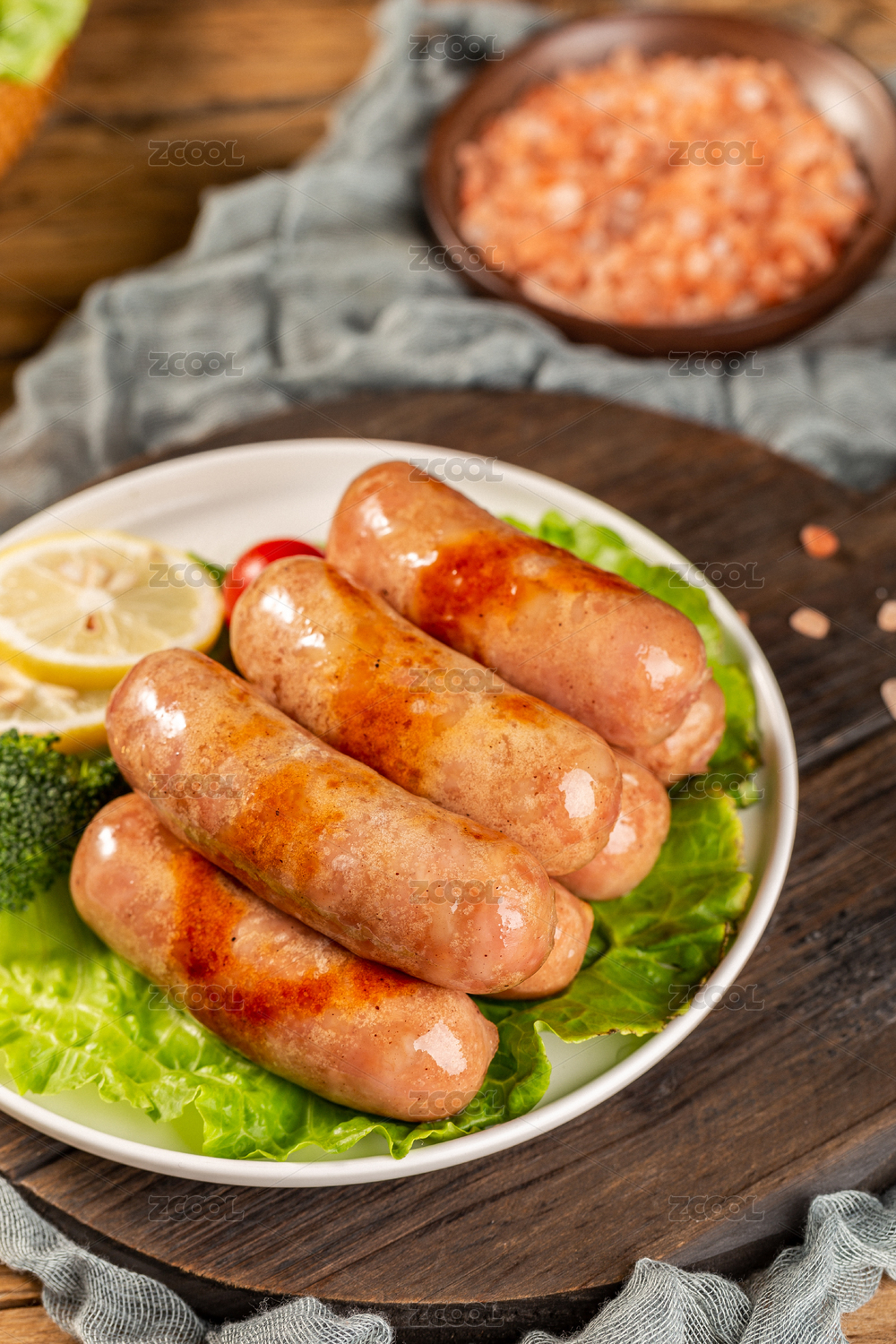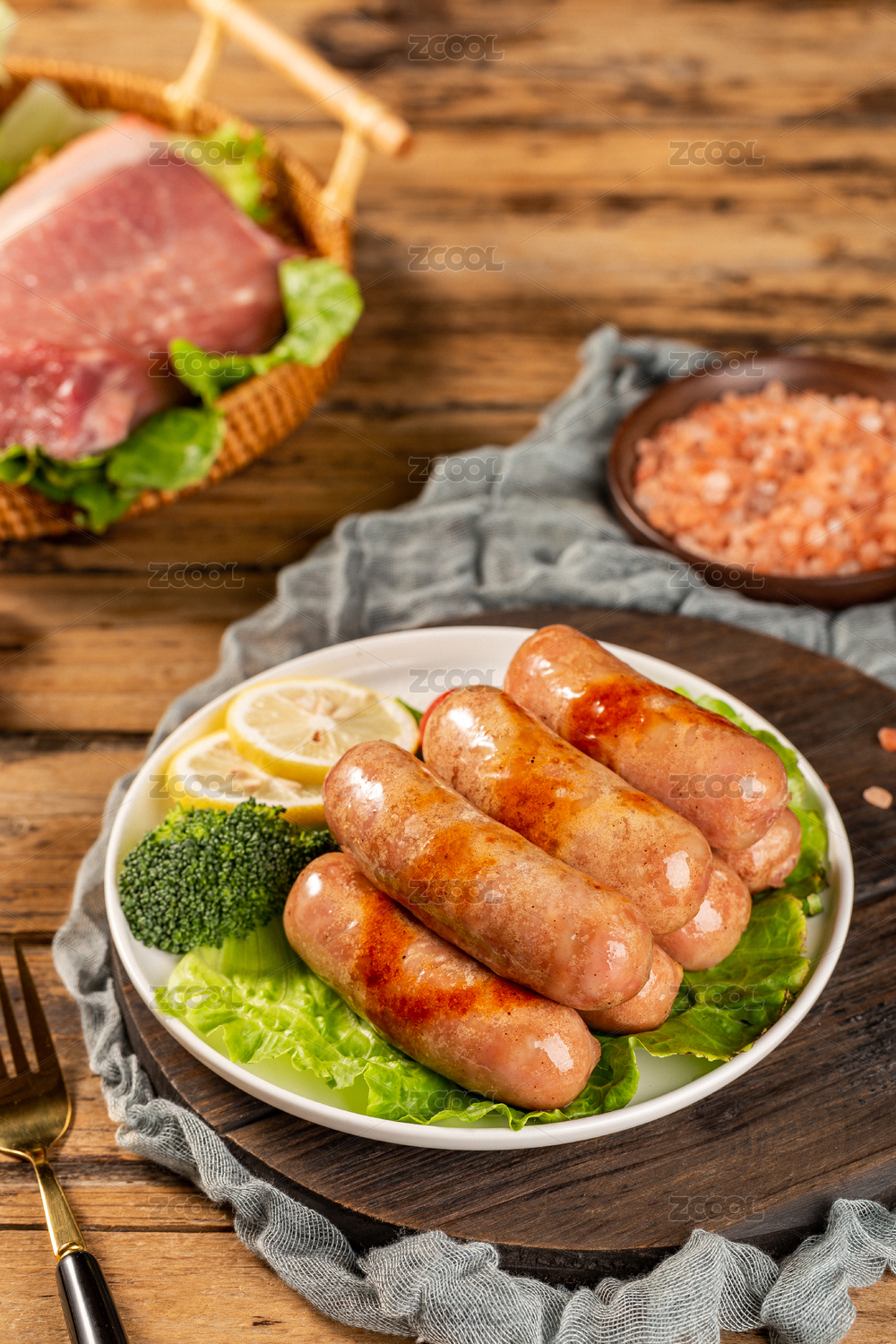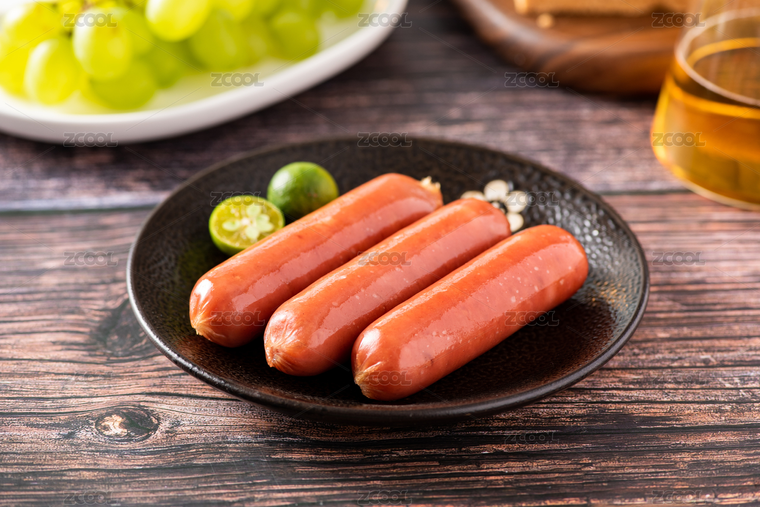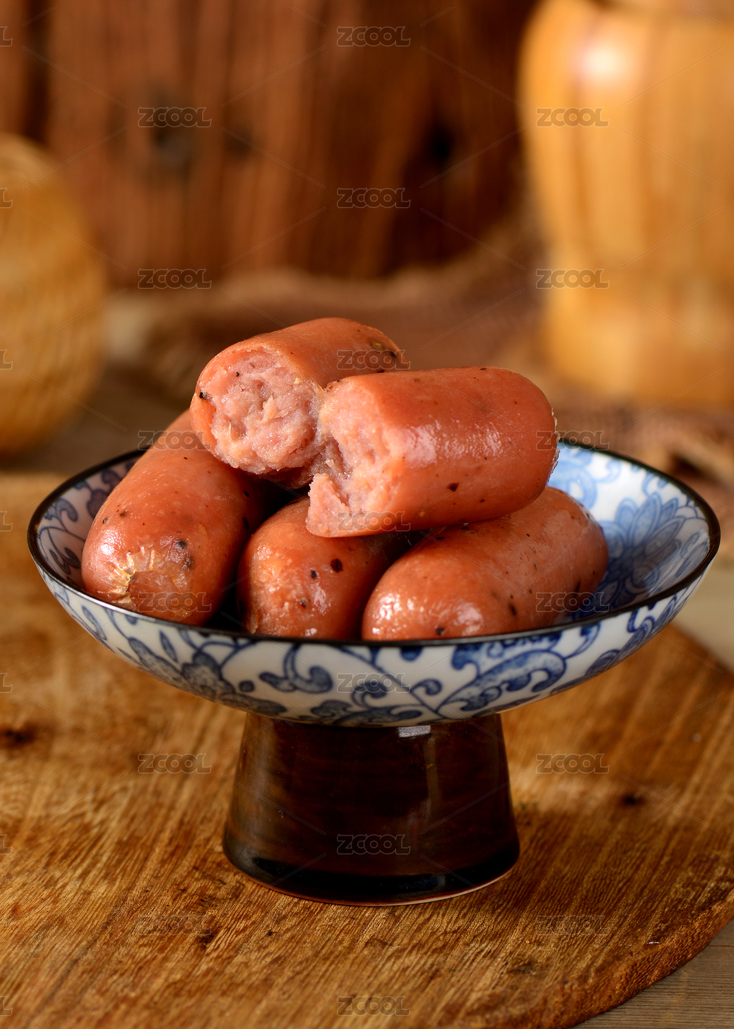 白底上的火腿肠