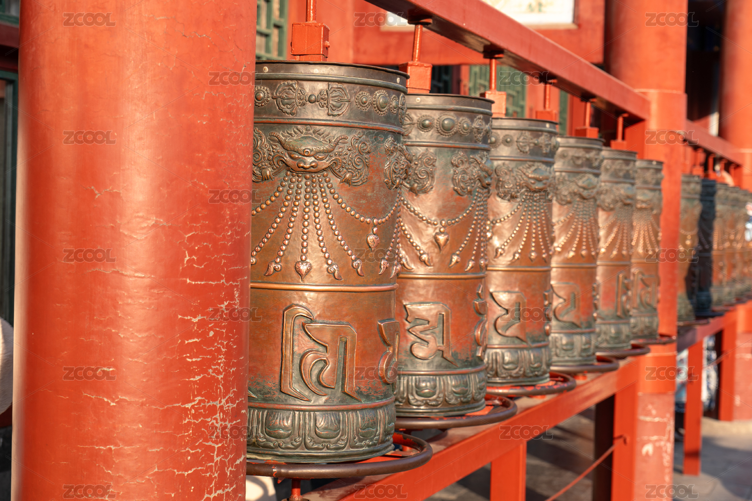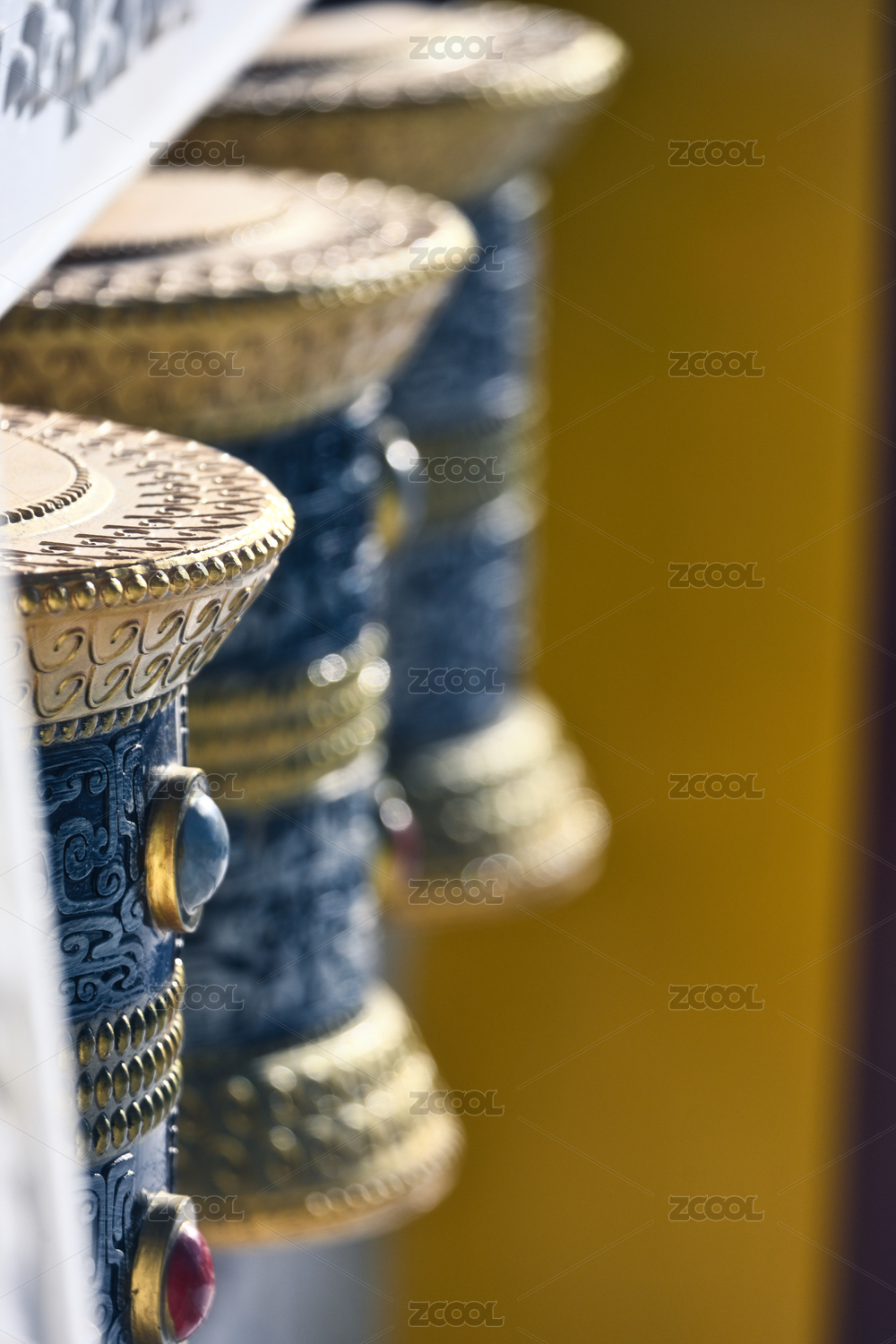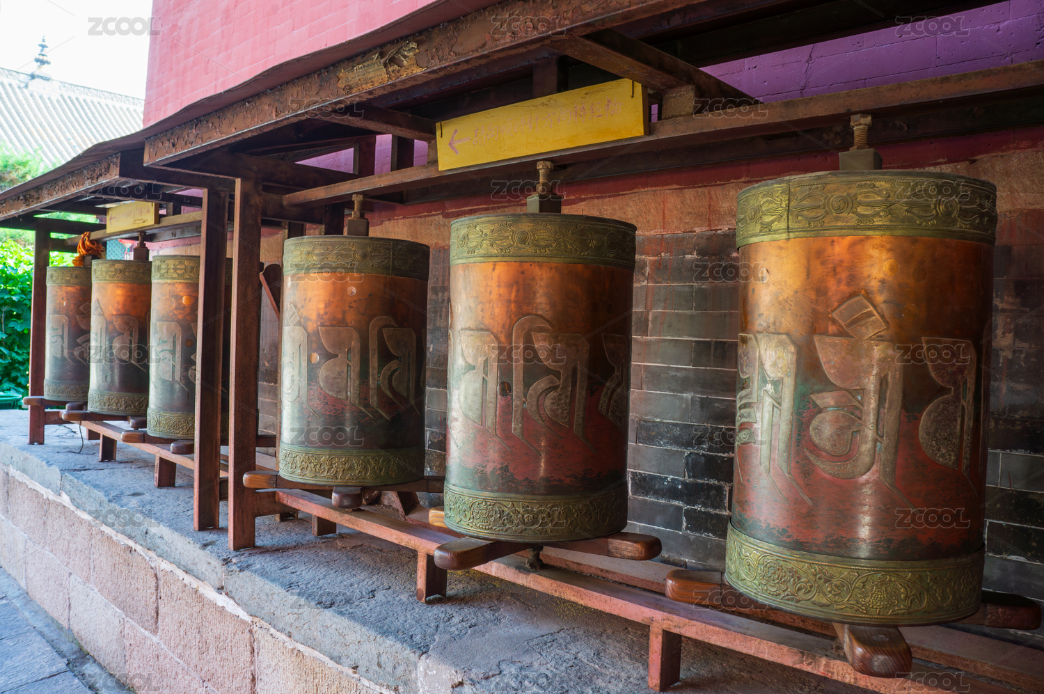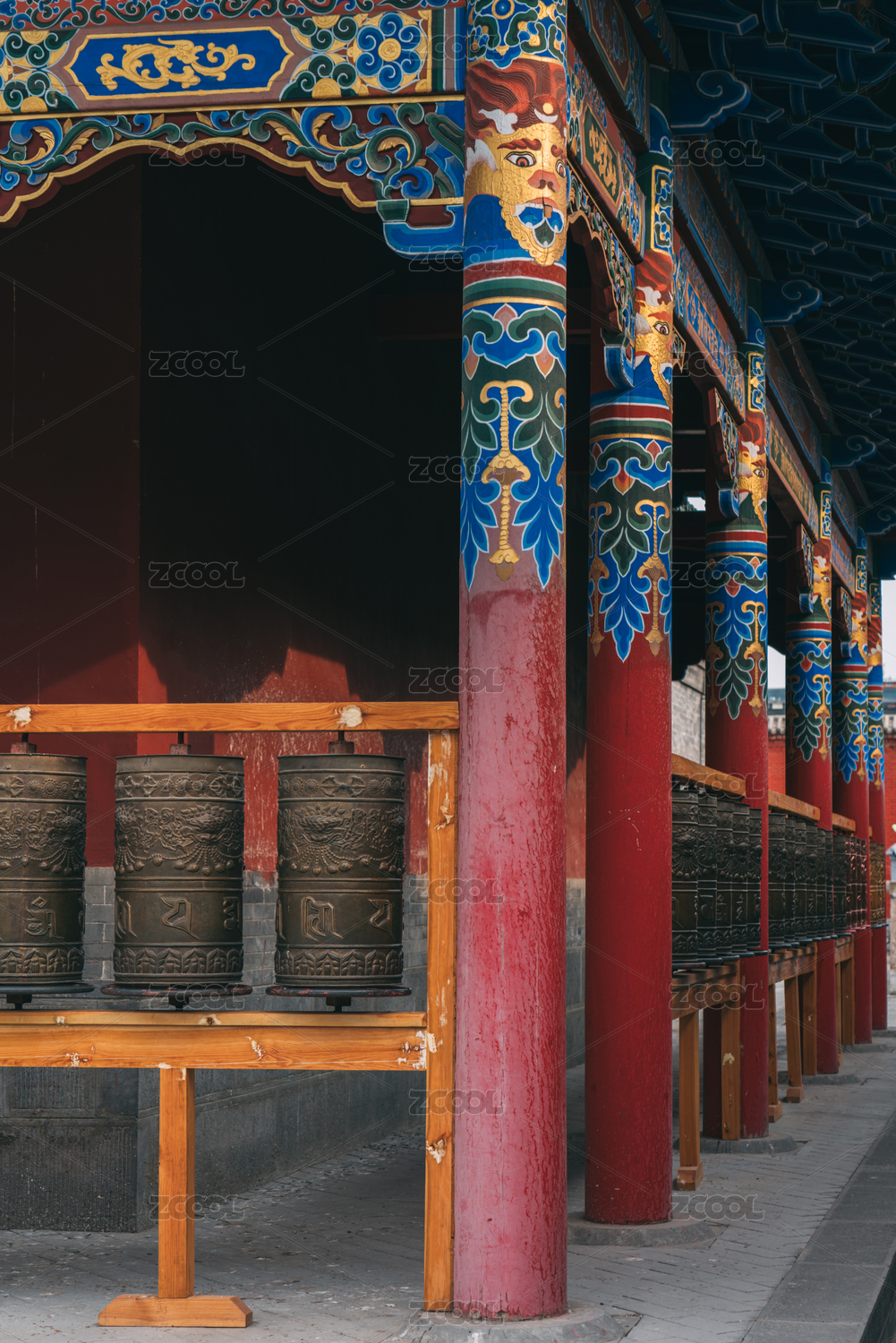 四川甘孜州稻城县著杰寺内排列整齐的转经筒