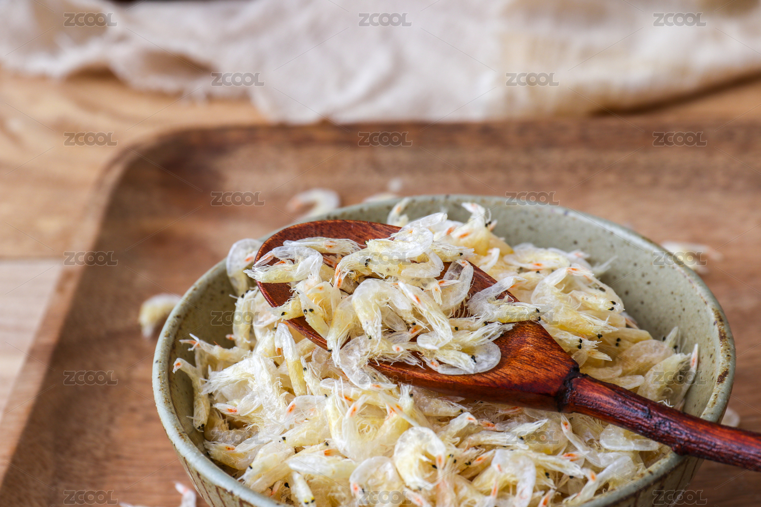 木碗里自然晒干的浅色虾皮