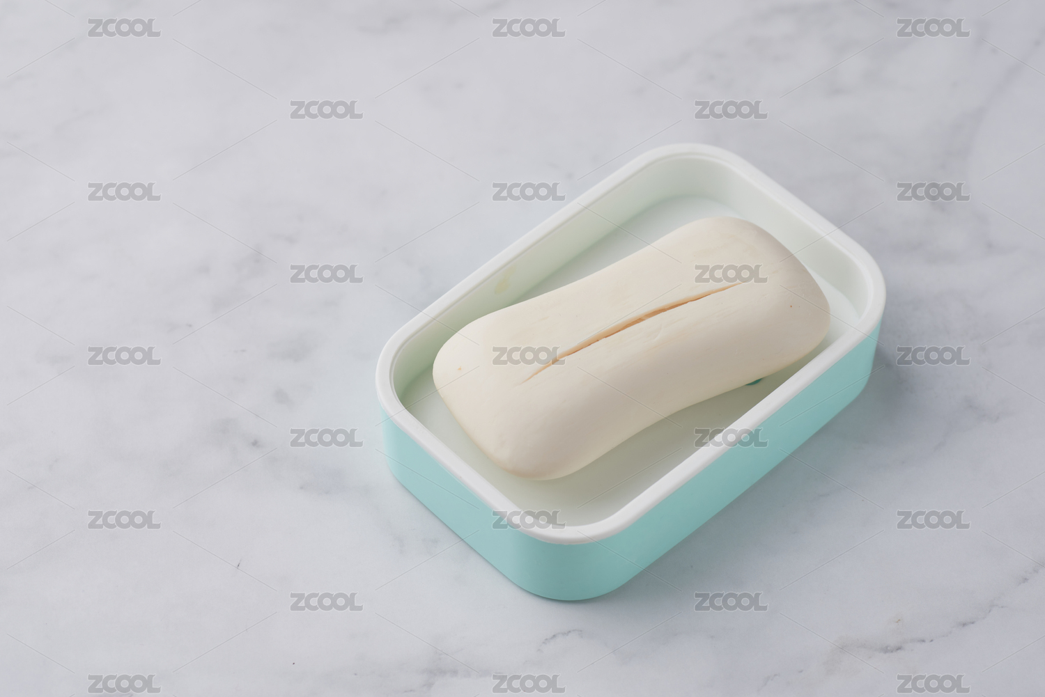 蓝色皂盒里因干燥而裂开的香皂