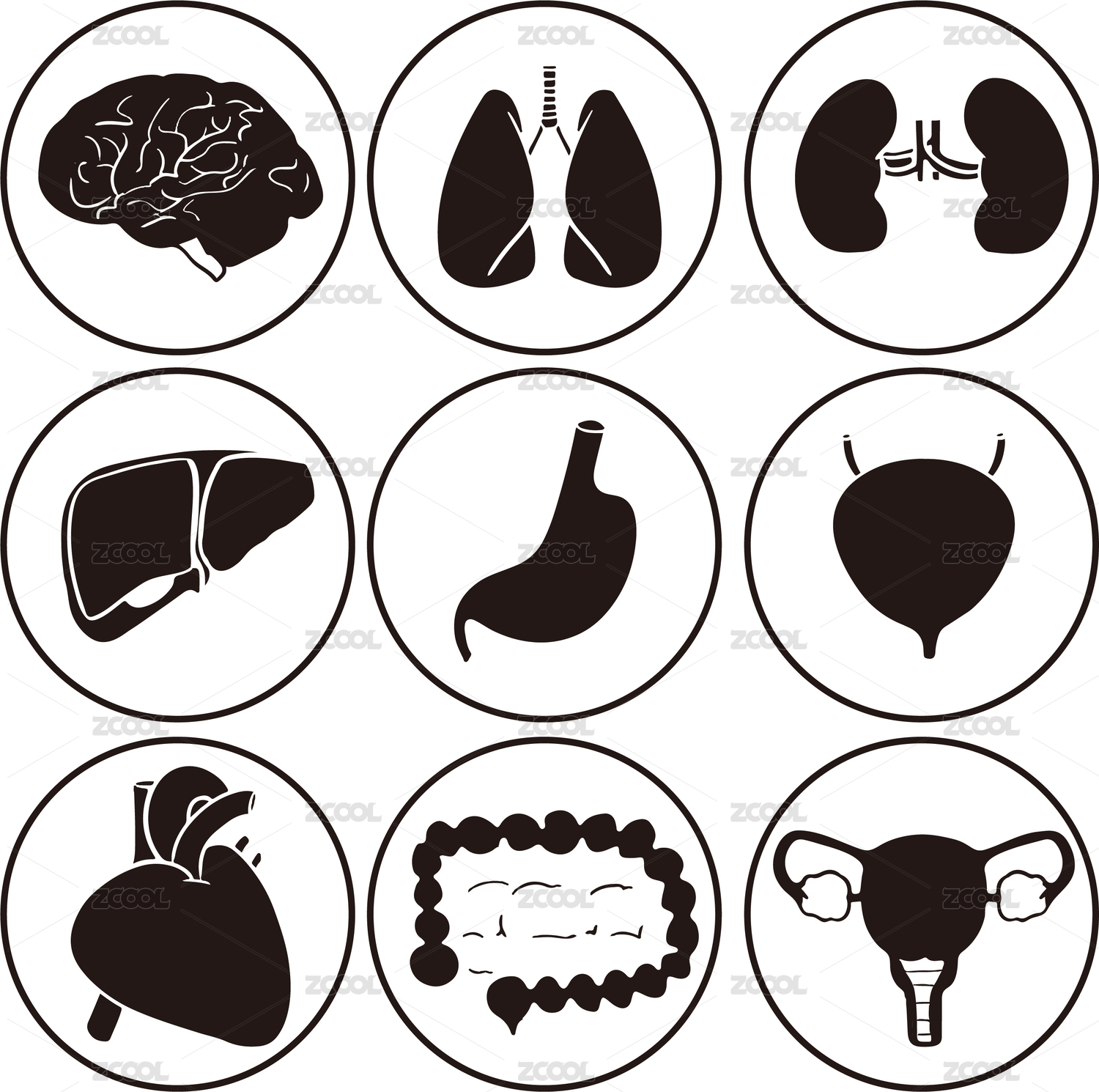 人体器官心脏大脑肝脏胃肠胃肾脏子宫膀胱图标