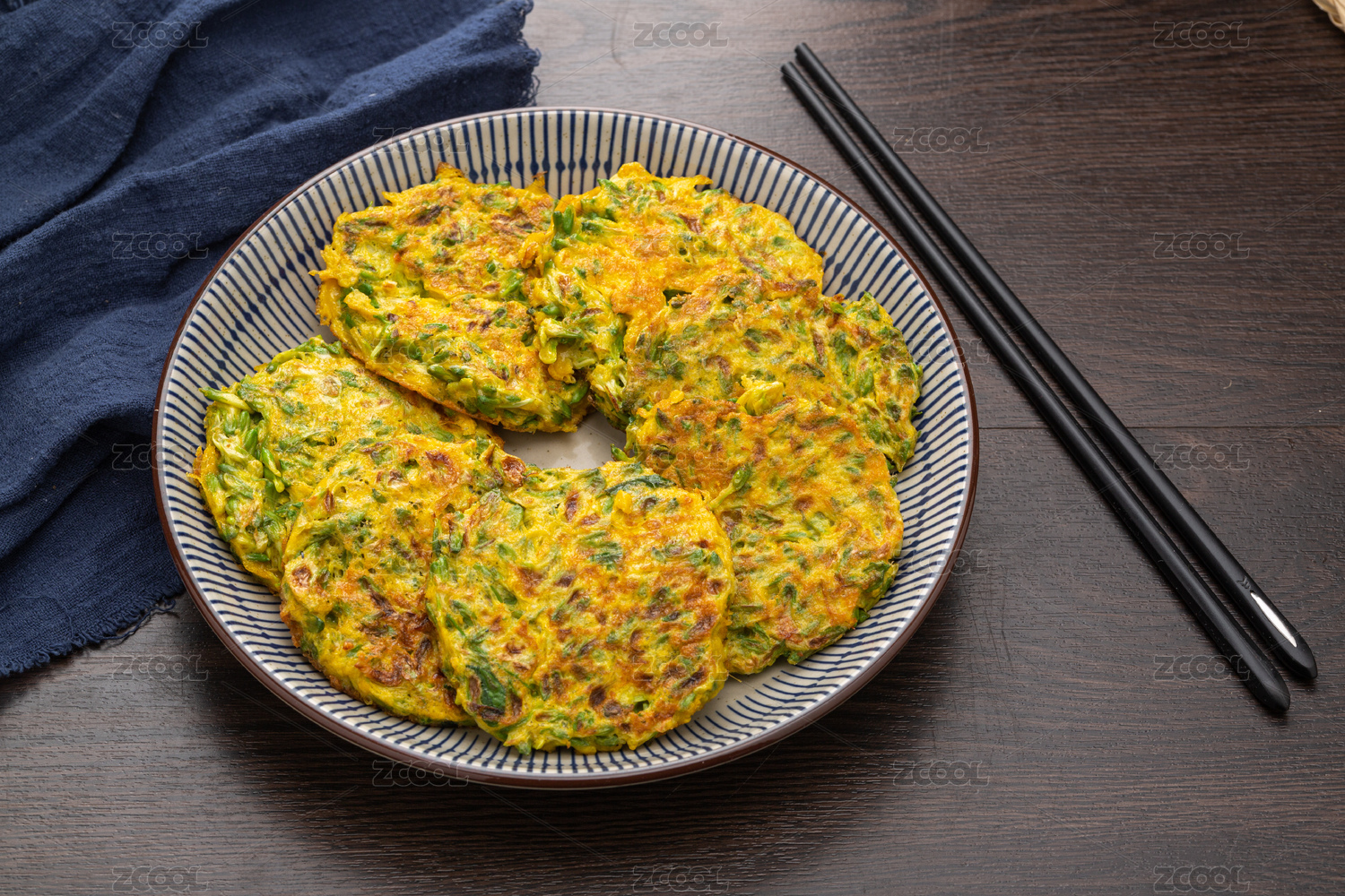 装在盘子里的农家传统美食:槐花鸡蛋饼