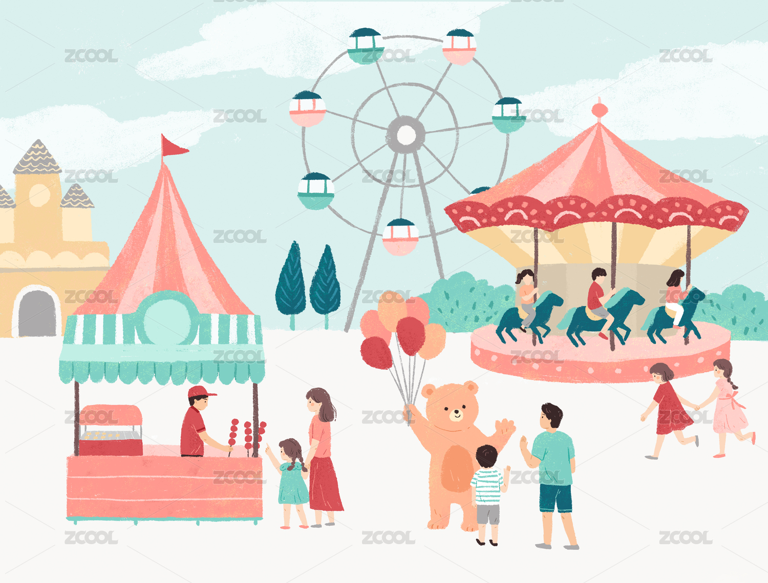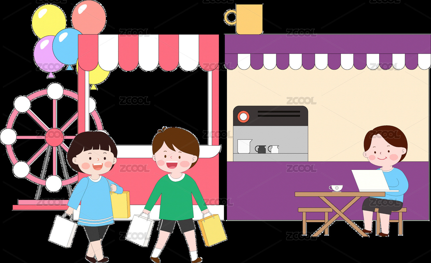 卡通儿童游乐园咖啡店购物玩耍扁平化插画