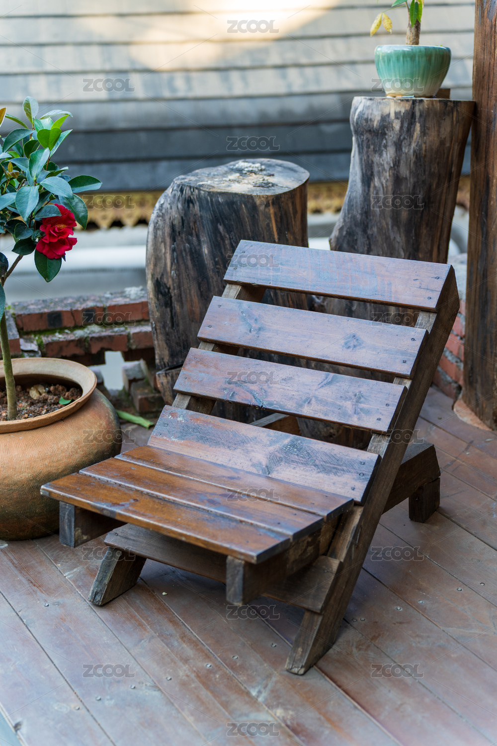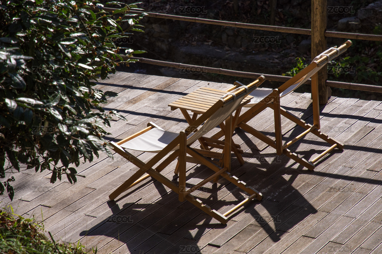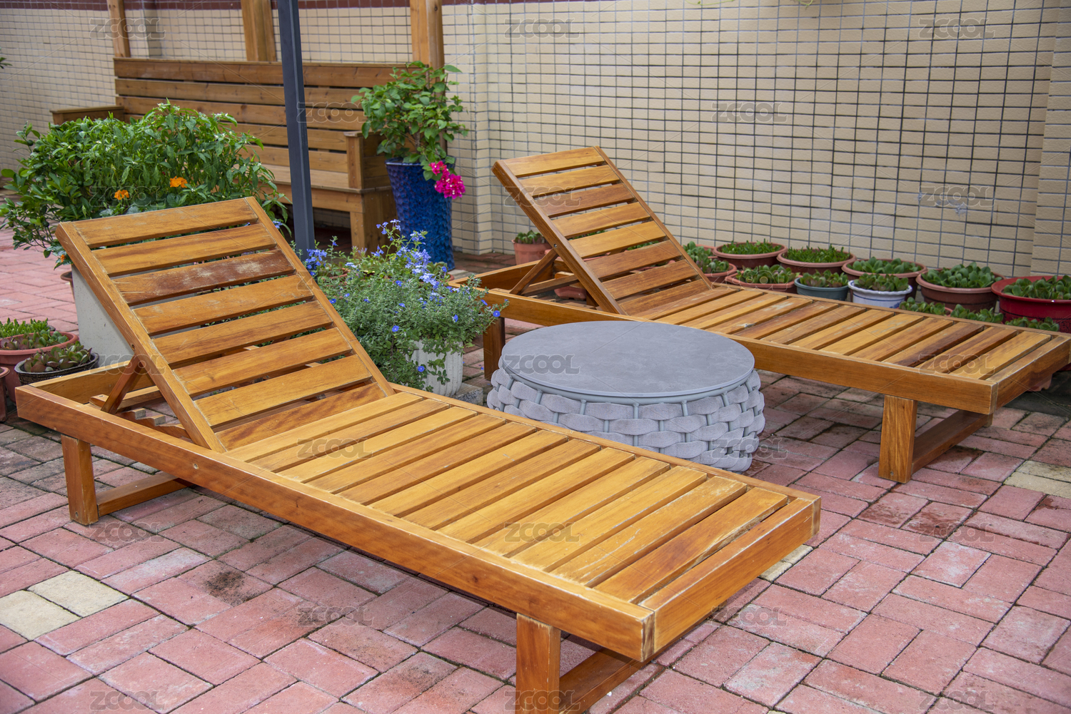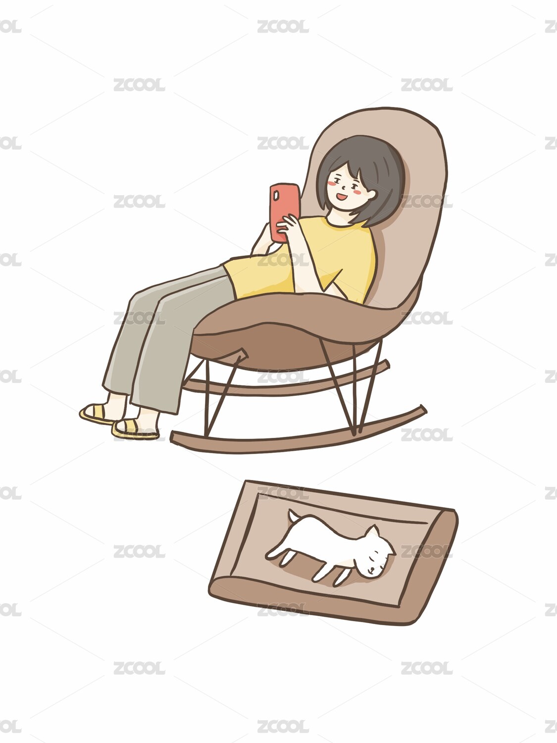 坐在躺椅上玩手机的女孩和睡觉的狗
