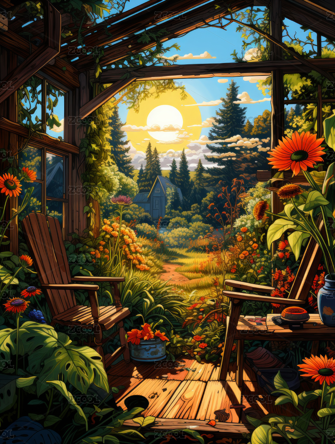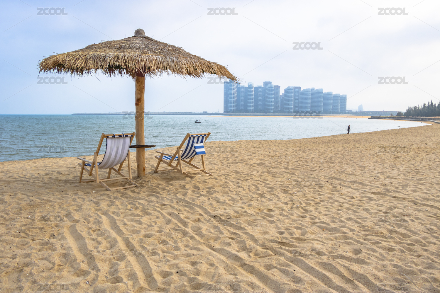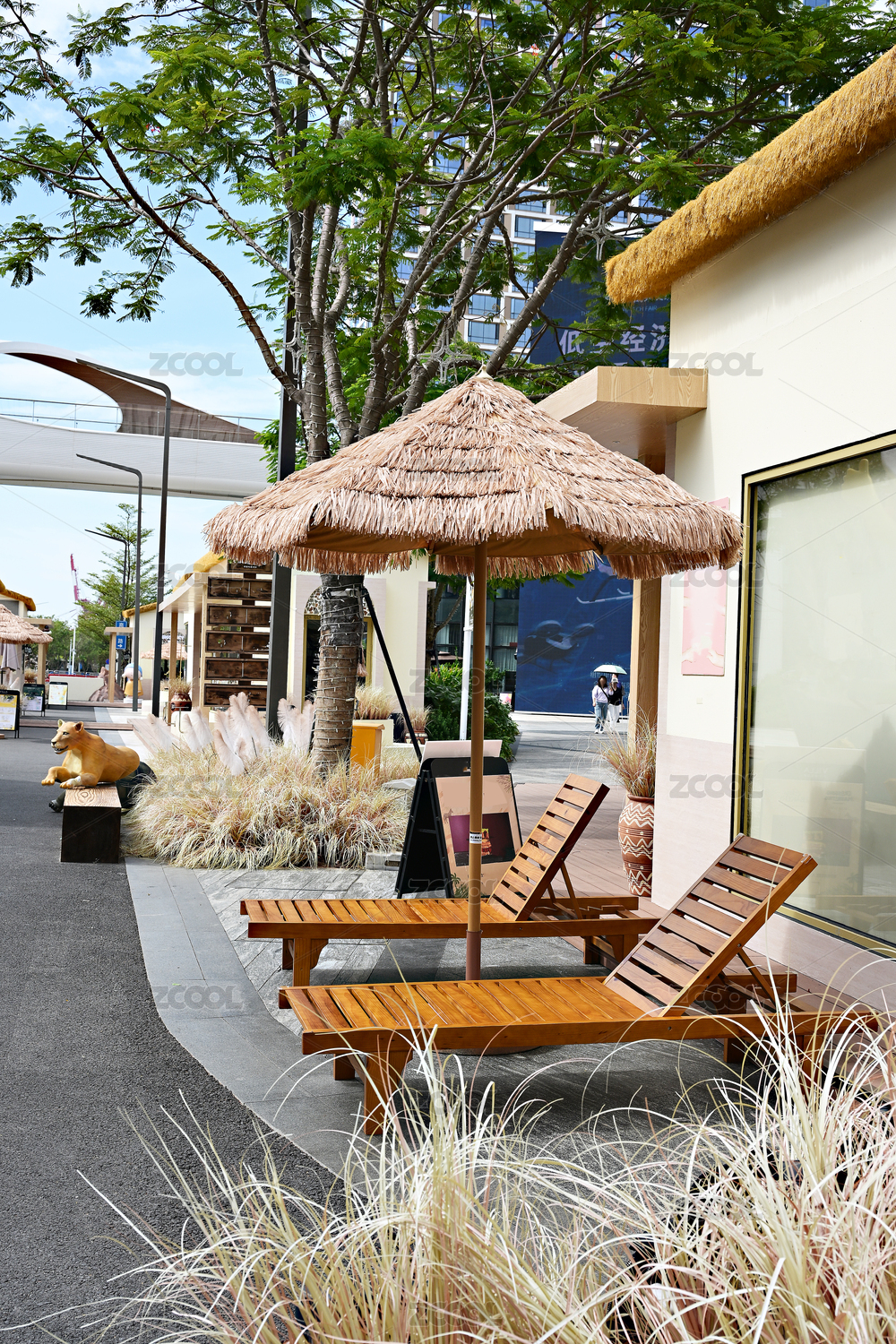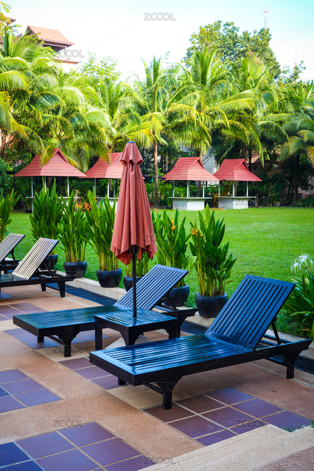 坐在躺椅上玩手机的女孩和睡觉的狗