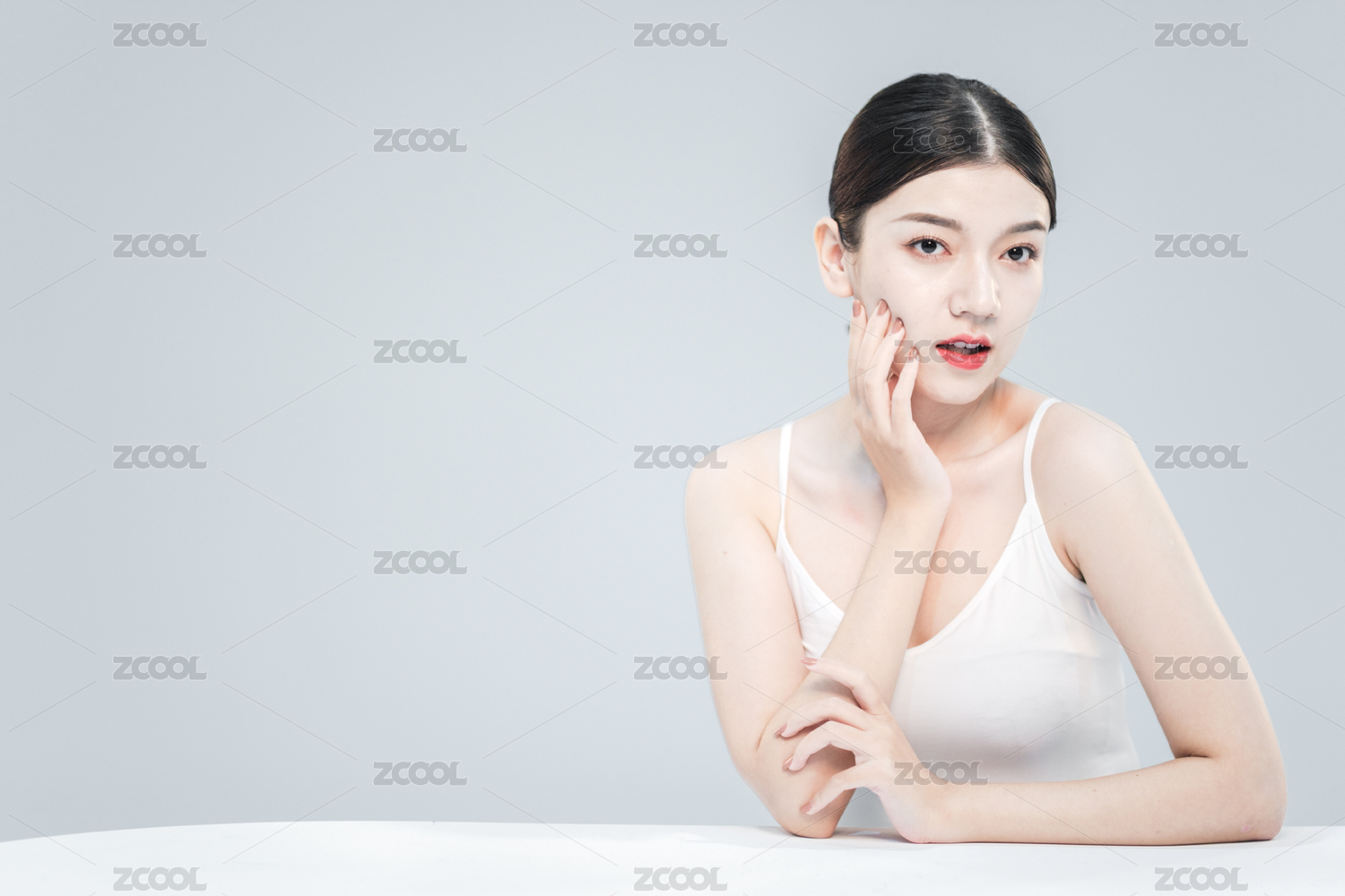 纯色背景前的年轻亚洲女性美容