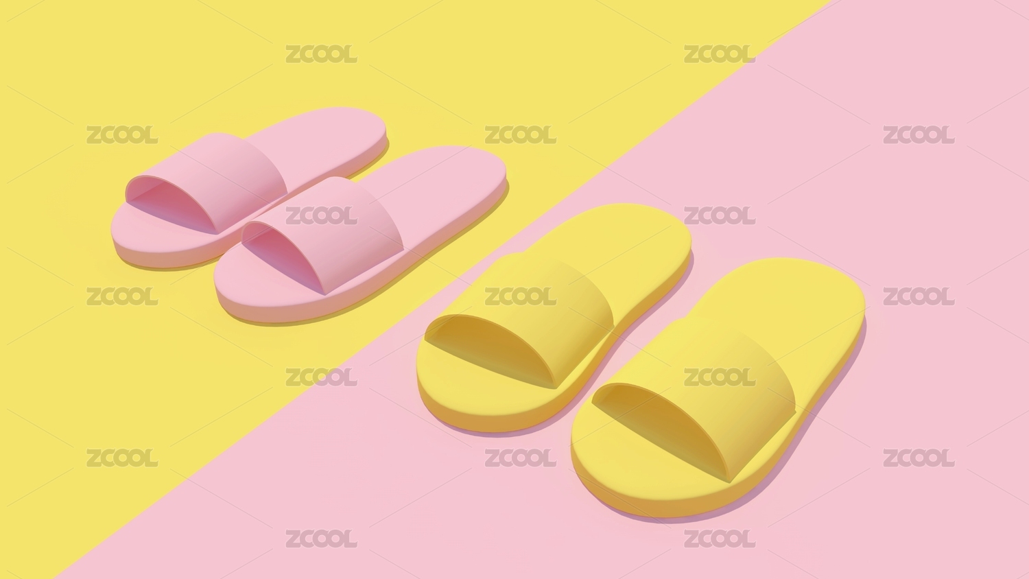 纯色背景上的小清新拖鞋