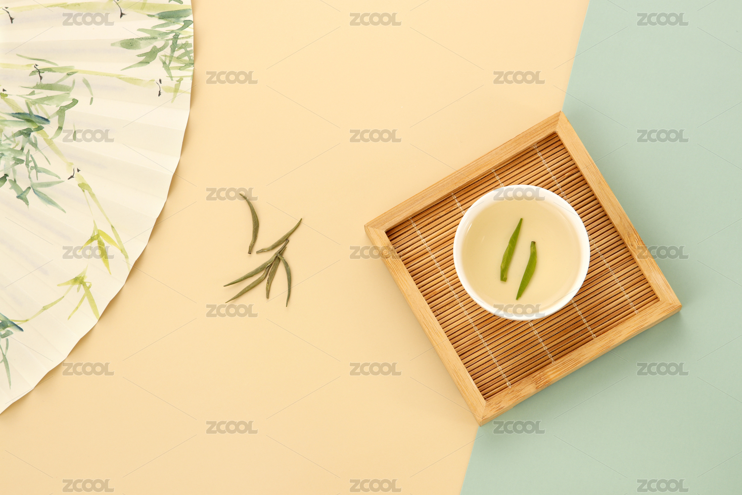 纯色背景上的绿茶