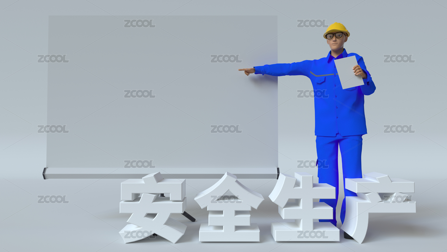 纯色背景身穿蓝色工服的工人汇报ppt