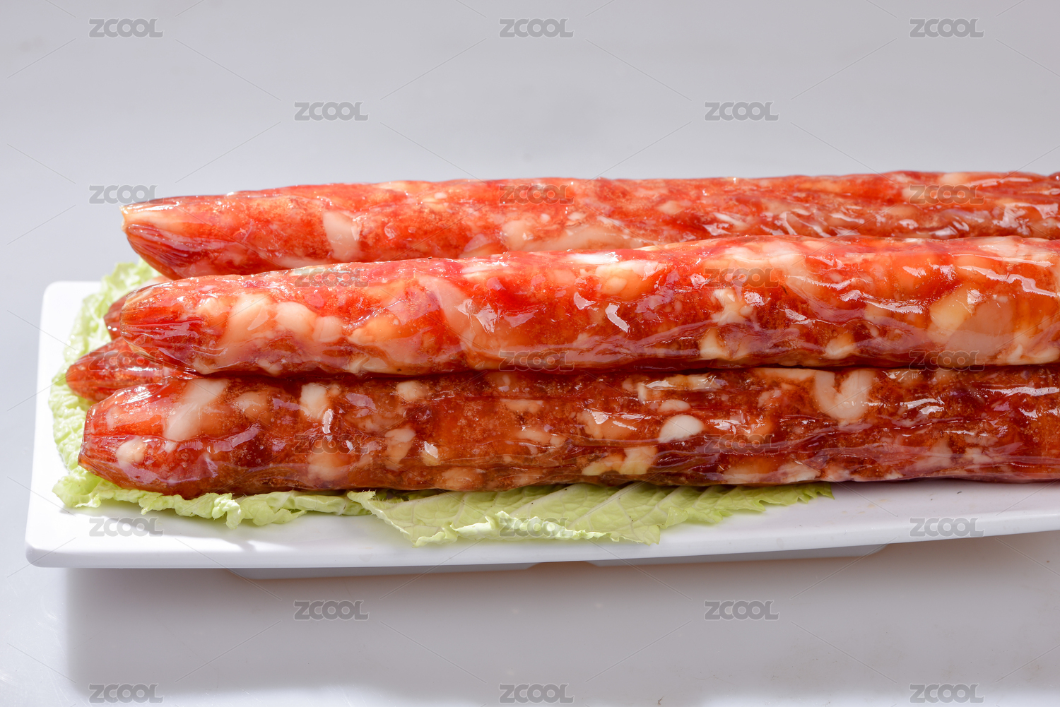 纯色背景中的传统美食香肠