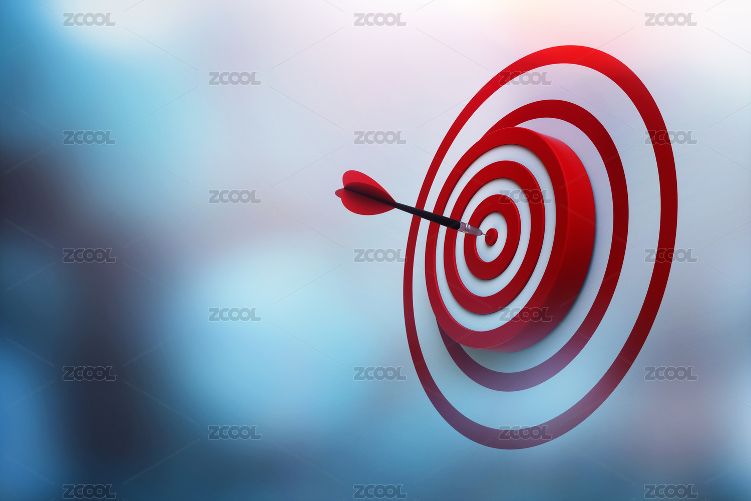 红色飞镖瞄准目标,3D渲染