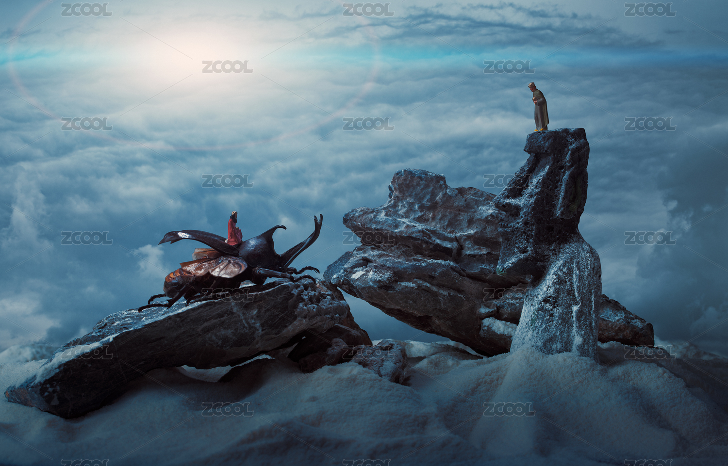 微缩摄影魔幻桌面壁纸云天空独角仙巨人